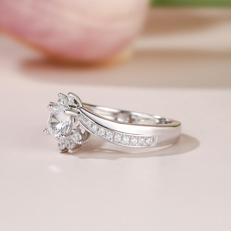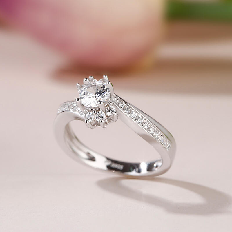 Jeulia Bypass Round Cut Sterling Silver Ring