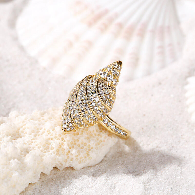 If you love the ocean, the conch shell ring will be your best choice. Crafted in gold tone sterling silver, the shell and band are decorated with sparkling stones, which add elegance and brilliance to the ring. Treat yourself or surprise her with this masterpiece on holidays, birthdays, anniversaries, and other special occasions to celebrate your enduring love.