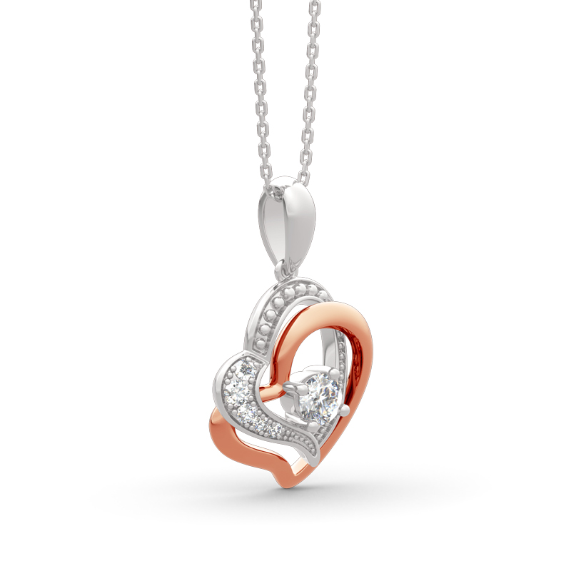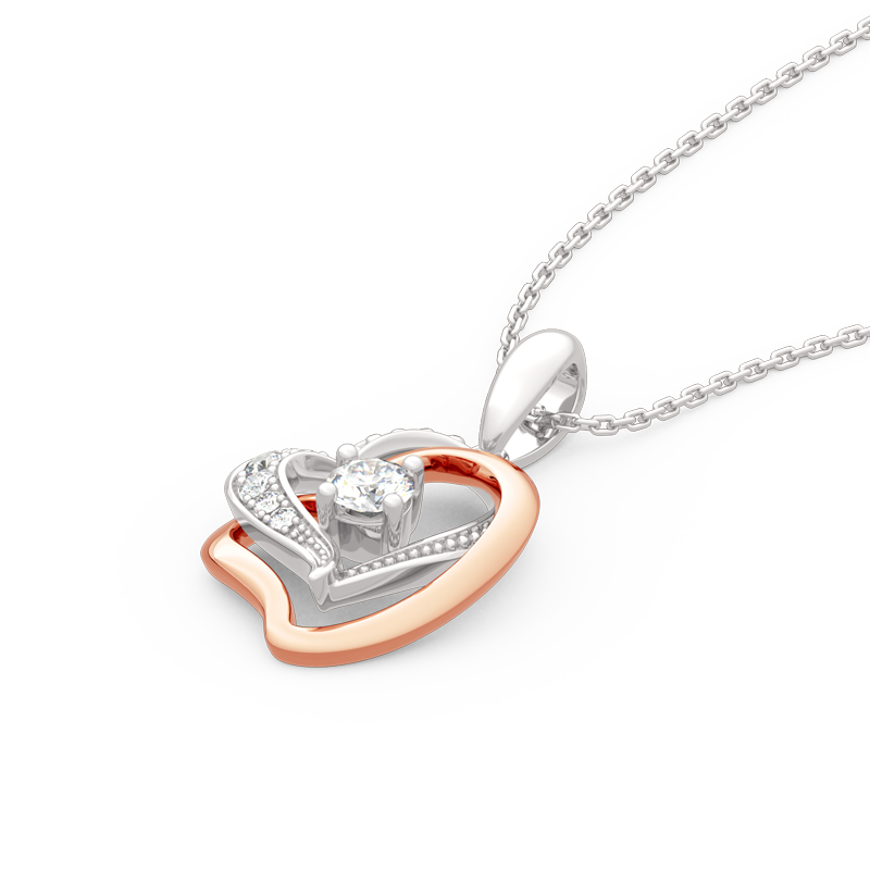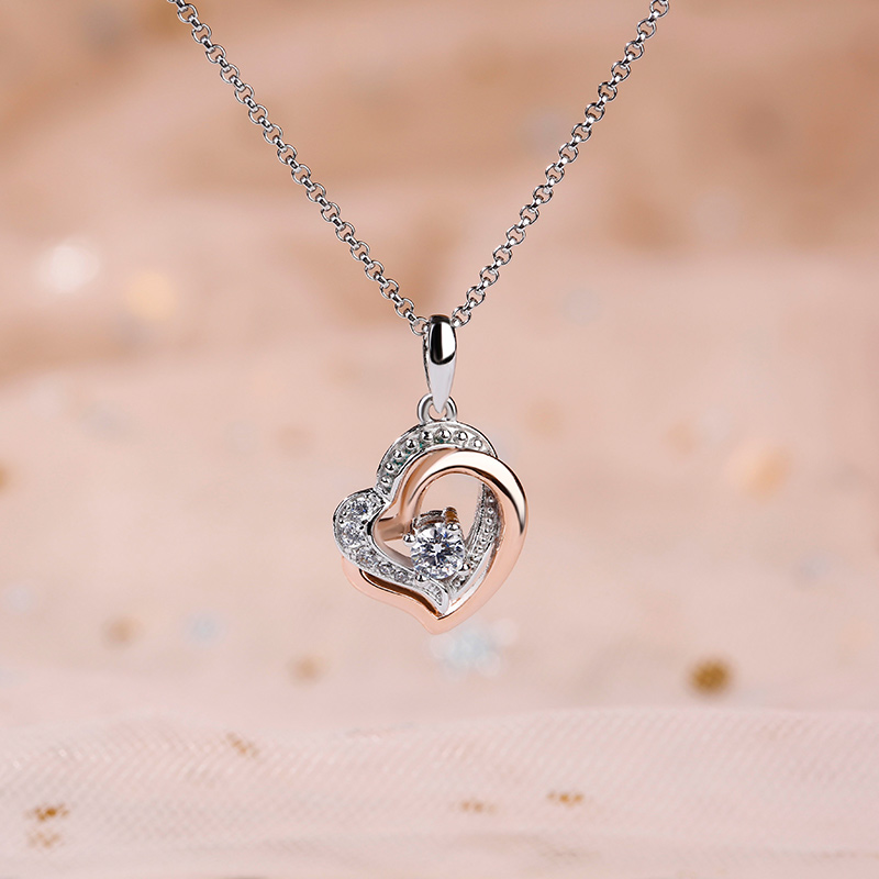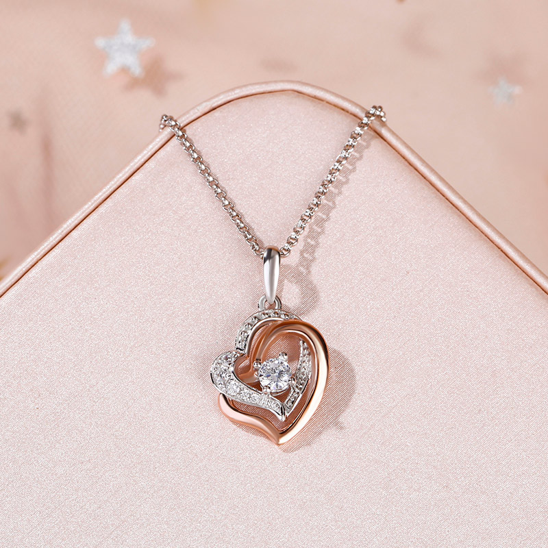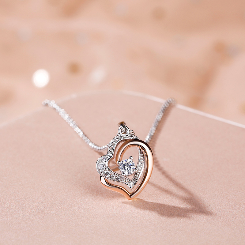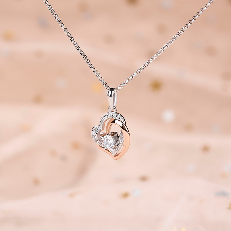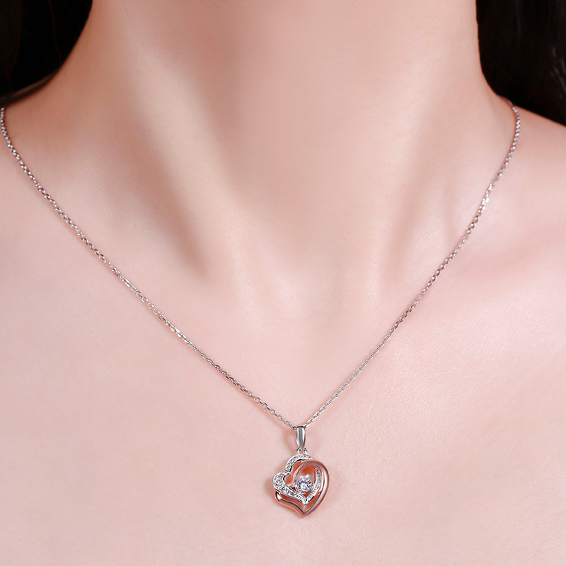 Simple and classic, this heart necklace makes an adorable gift for loved one. Heart is one of the most popular motifs in jewelry. It's always related with love. Crafted in sterling silver, it features two open heart-shaped frames centered with a bright round cut stone. Lending sparkle, the heart outline adorned with shimmering round stones. This fashion and sweet necklace keeps your heart close to hers at all times.