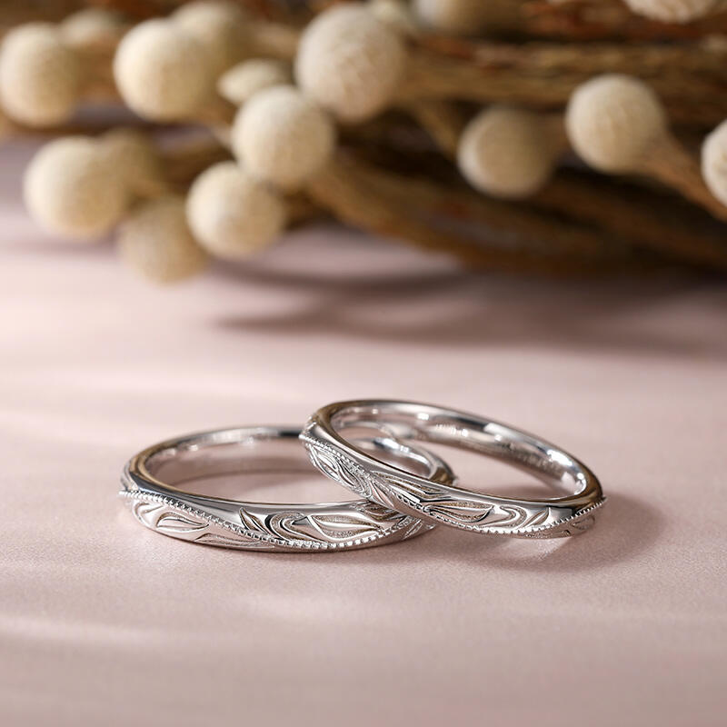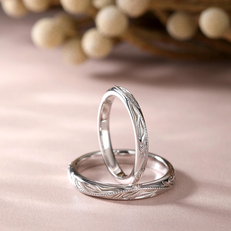 A beloved nature symbol, the leaf depicts the sweetness and wonder of love. Crafted in sterling silver, this band set features an intricate leaf pattern. This band set is interesting, different, and truly beautiful. It is a great jewelry gift to express love, witness your love, romantic and sweet.