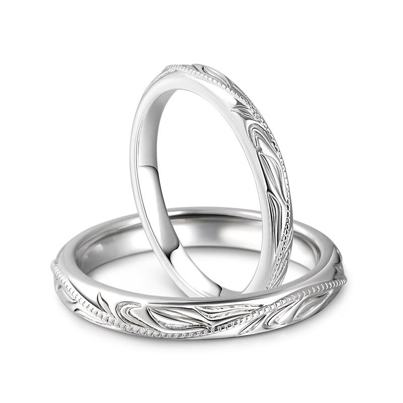 Jeulia "Always & Forever" Unique Leaf Carved Sterling Silver Couple Rings