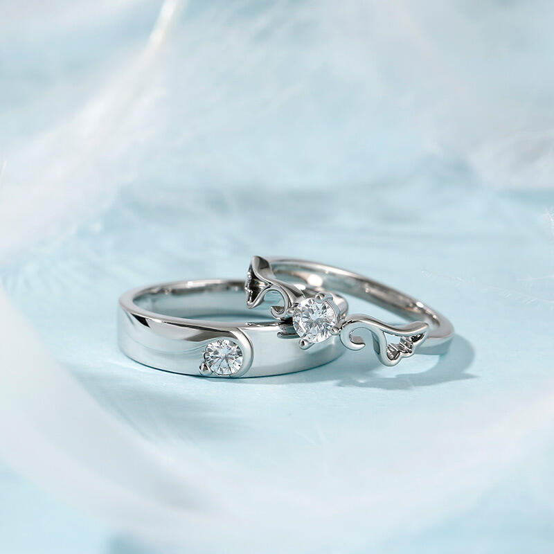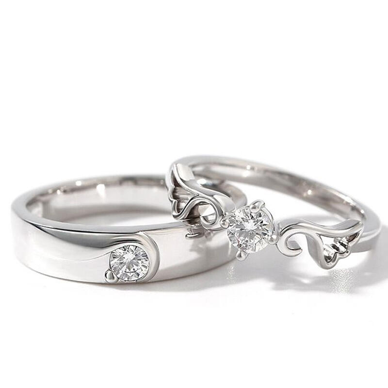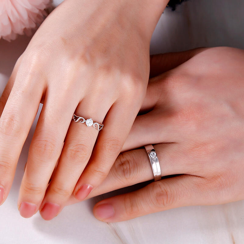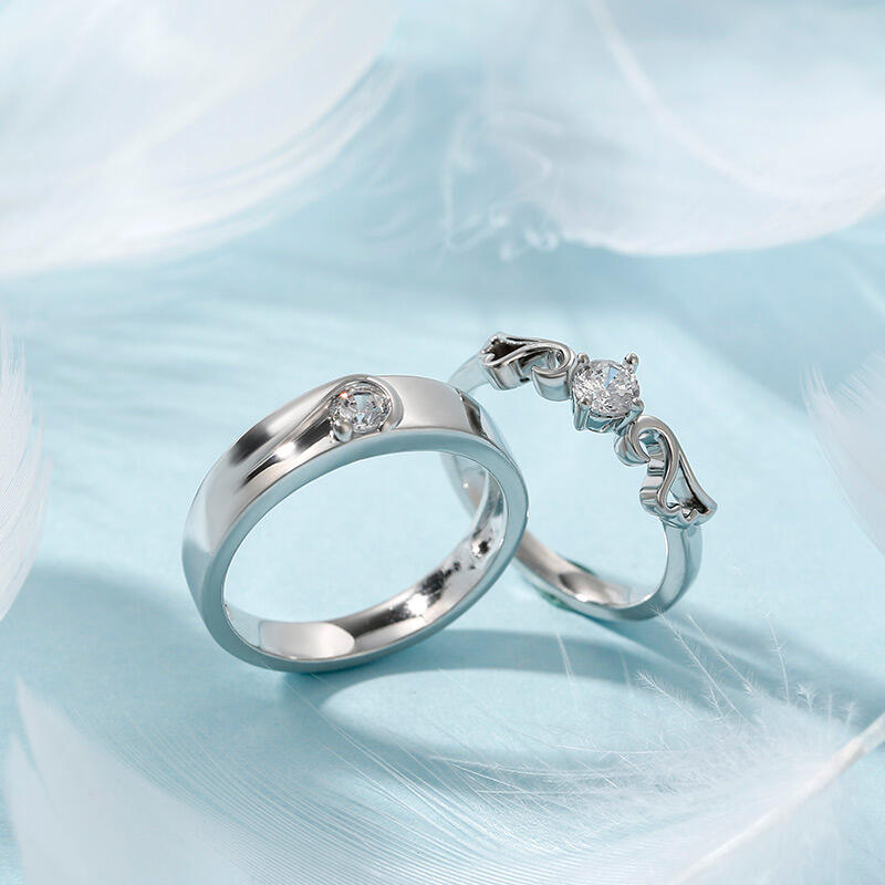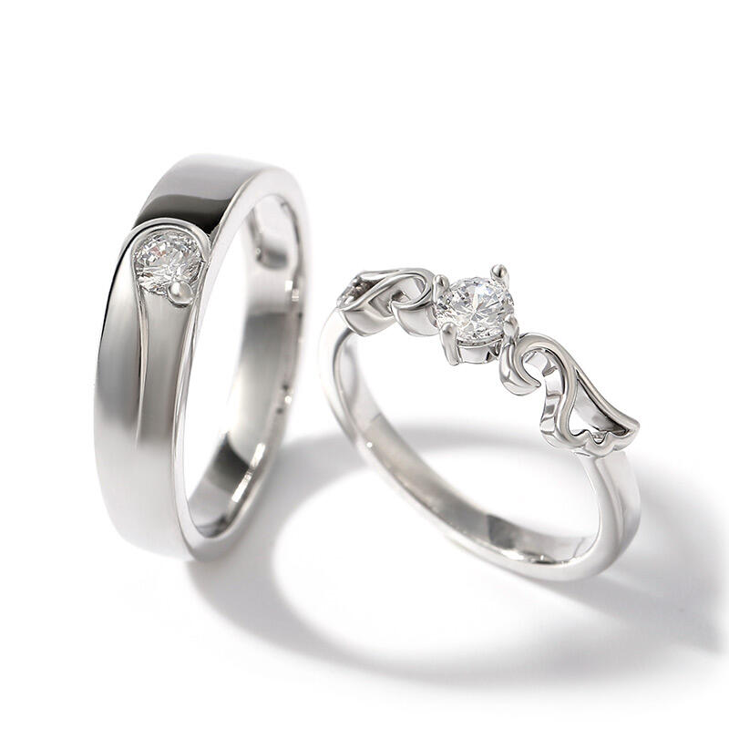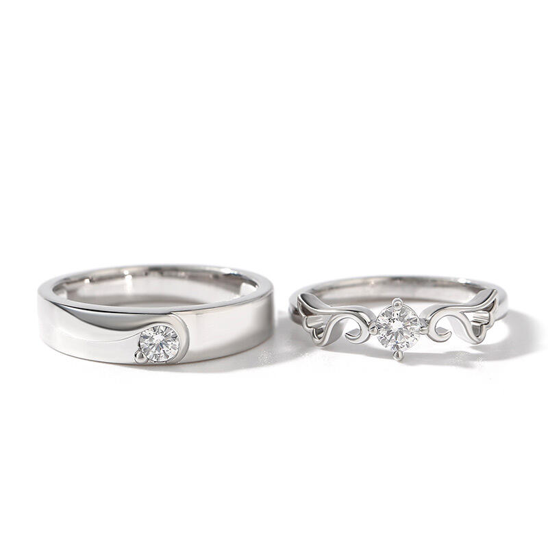 Jeulia "Angel Wings" Round Cut Sterling Silver Couple Rings