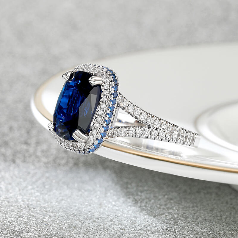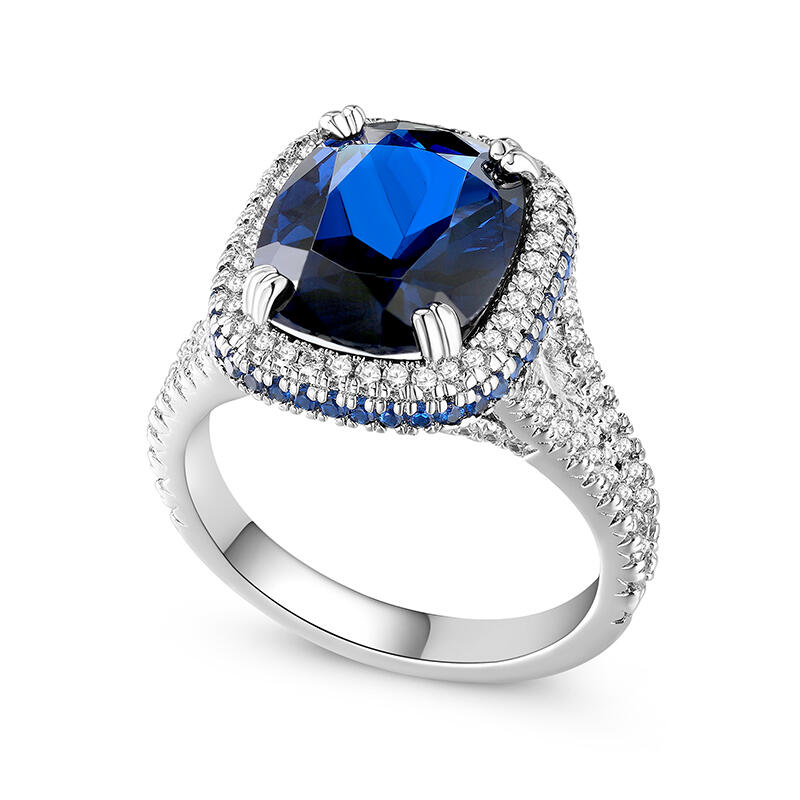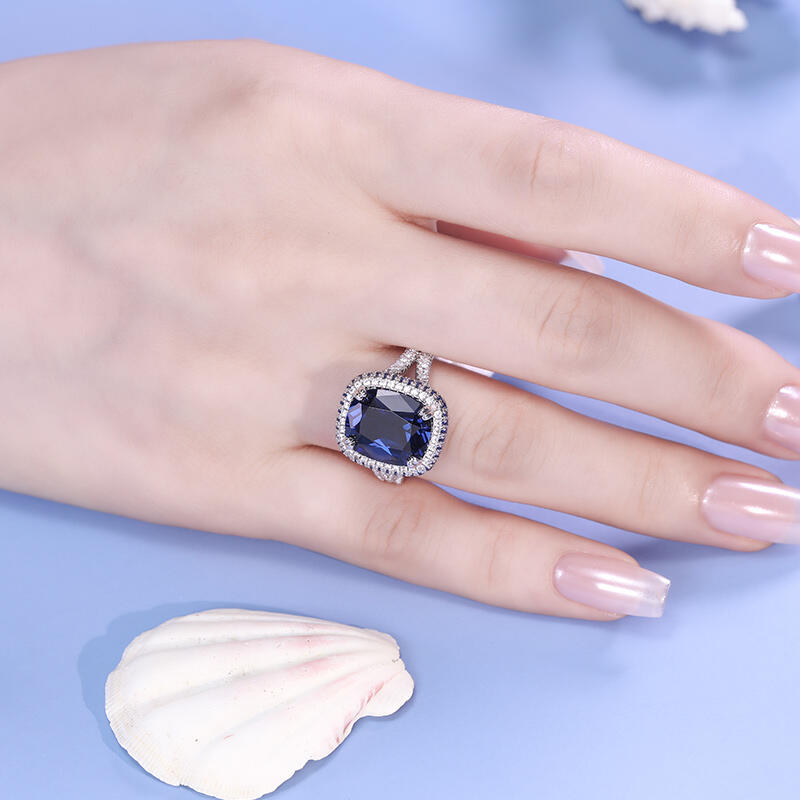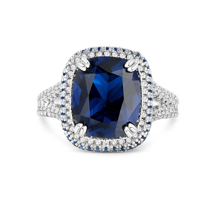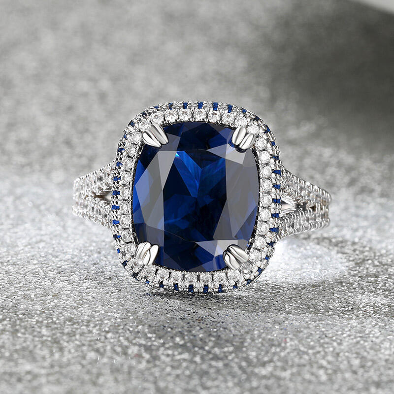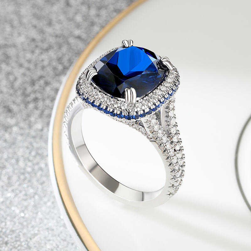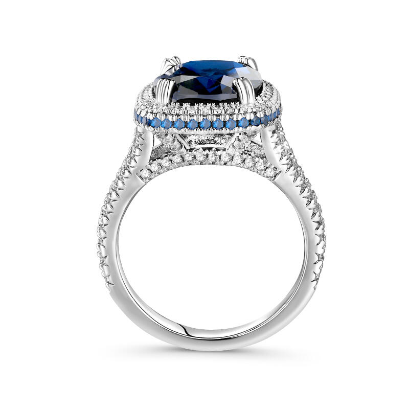 Jeulia "Blue Fantasy" Side Halo Cushion Cut Sterling Silver Engagement Ring