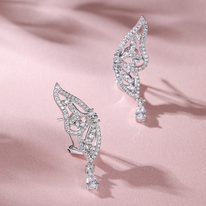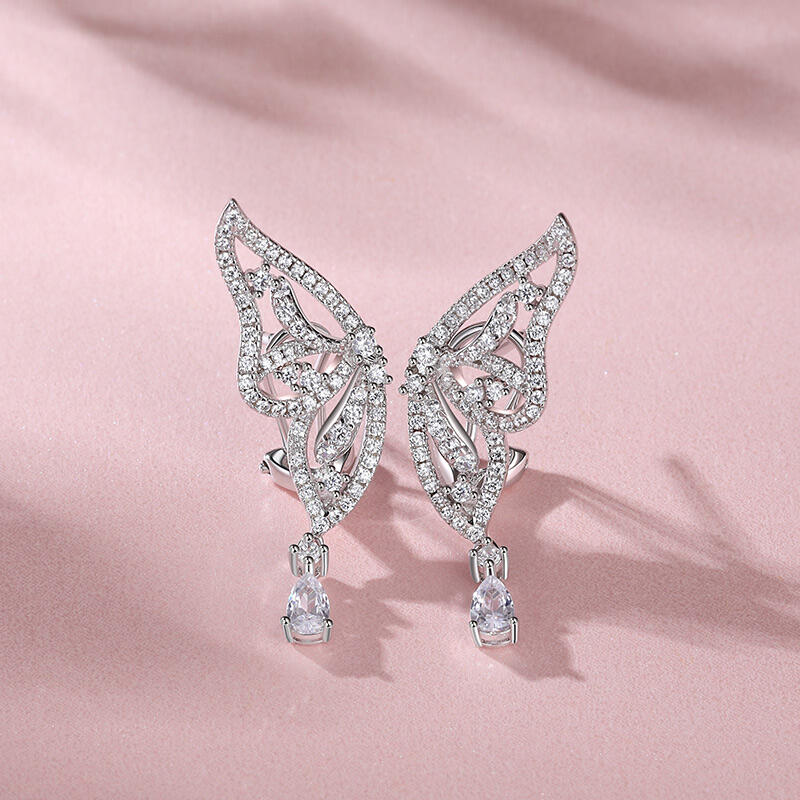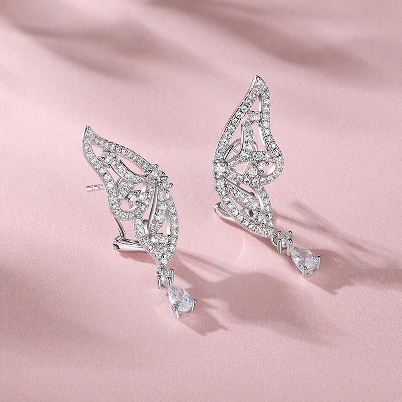 Jeulia "Celestial Flutter" Butterfly Pear Cut Sterling Silver Drop Earrings