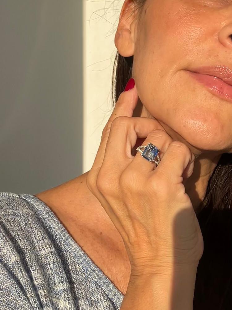 Jeulia "Coral Reefs" Emerald Cut Sterling Silver Ring