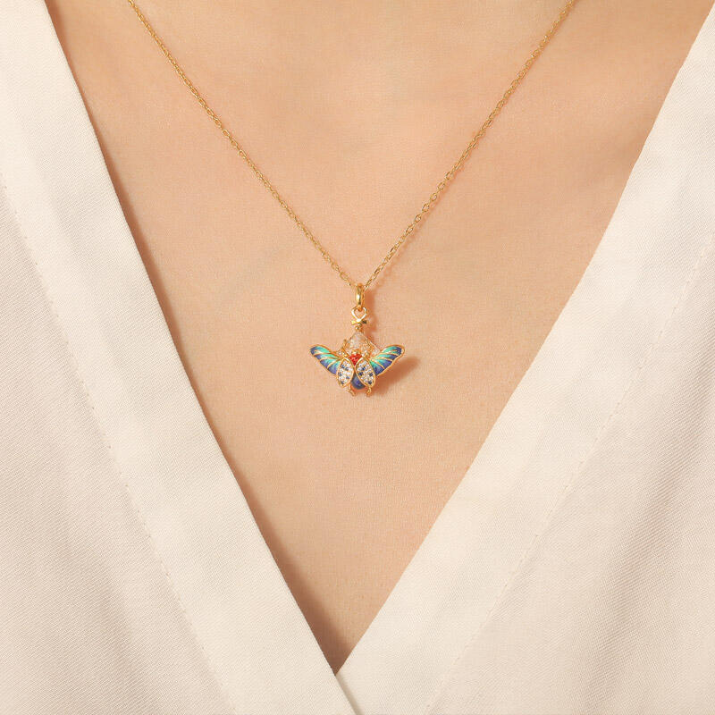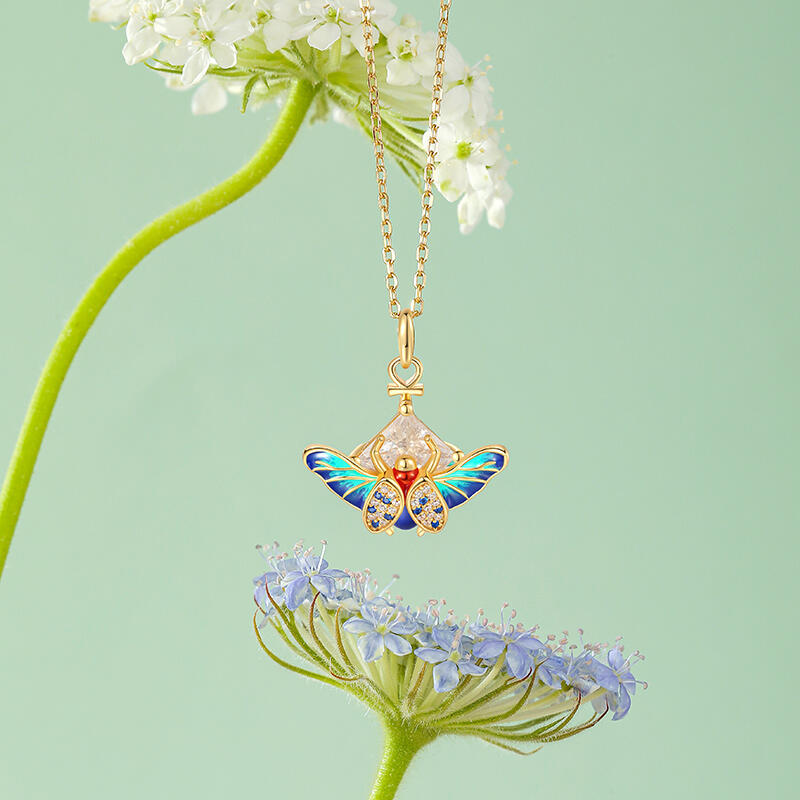 Jeulia "Fearless Heart" Ankh Colorful Saint Beetle Enamel Necklace