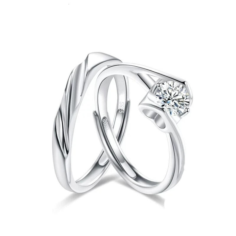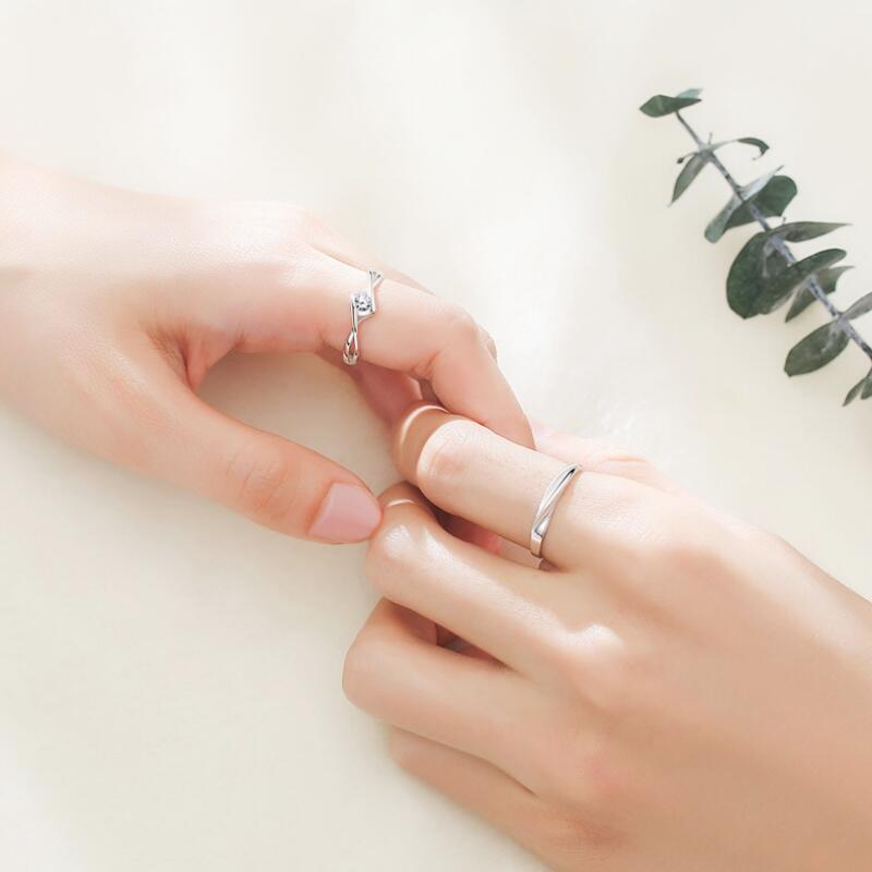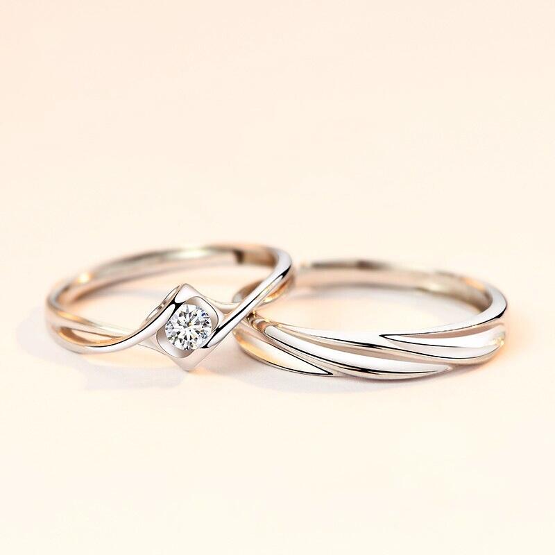 In this couple rings, the ring arm of the male ring uses a wave shape design, and the love shape of the female ring is matched together, showing the effect of heart. Giving it to each other on your anniversary or birthday must have special meaning.