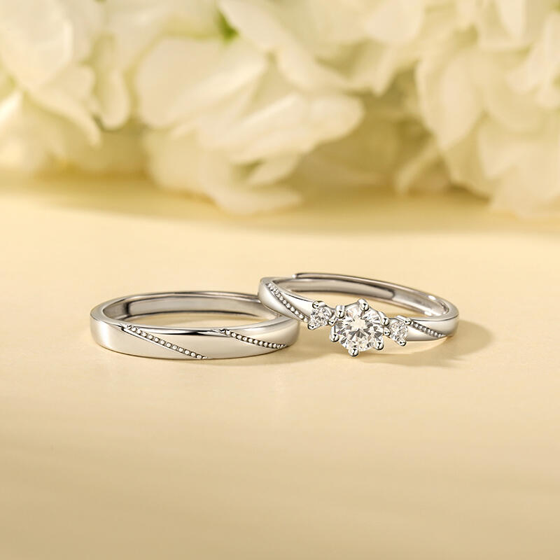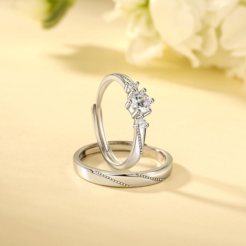 Jeulia "Flipped Moment" Sterling Silver Adjustable Couple's Rings