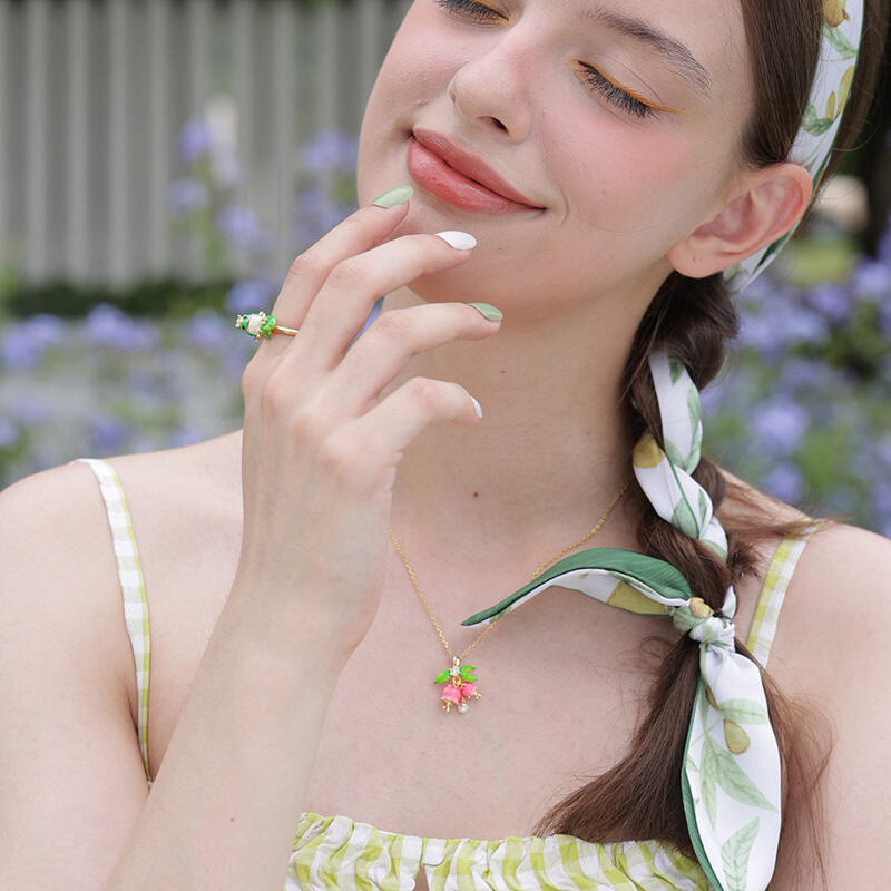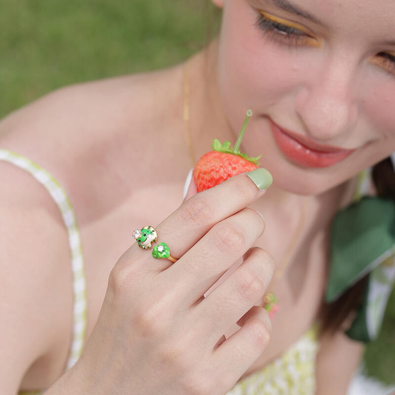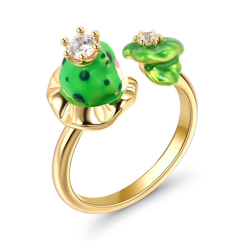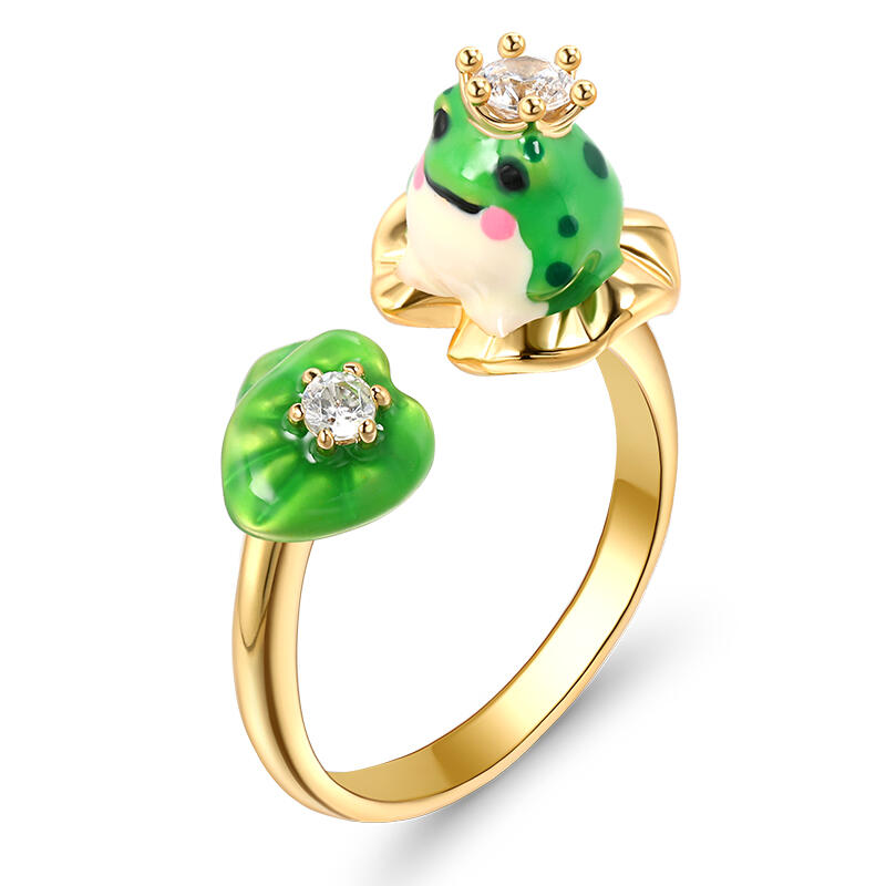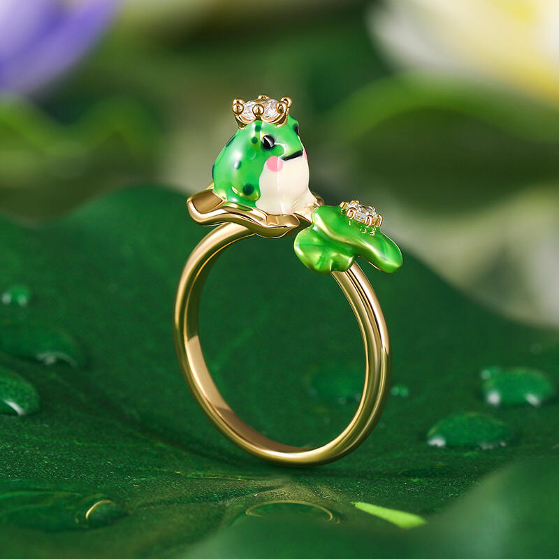 Jeulia "Frog Prince" Lotus Leaf Enamel Sterling Silver Ring