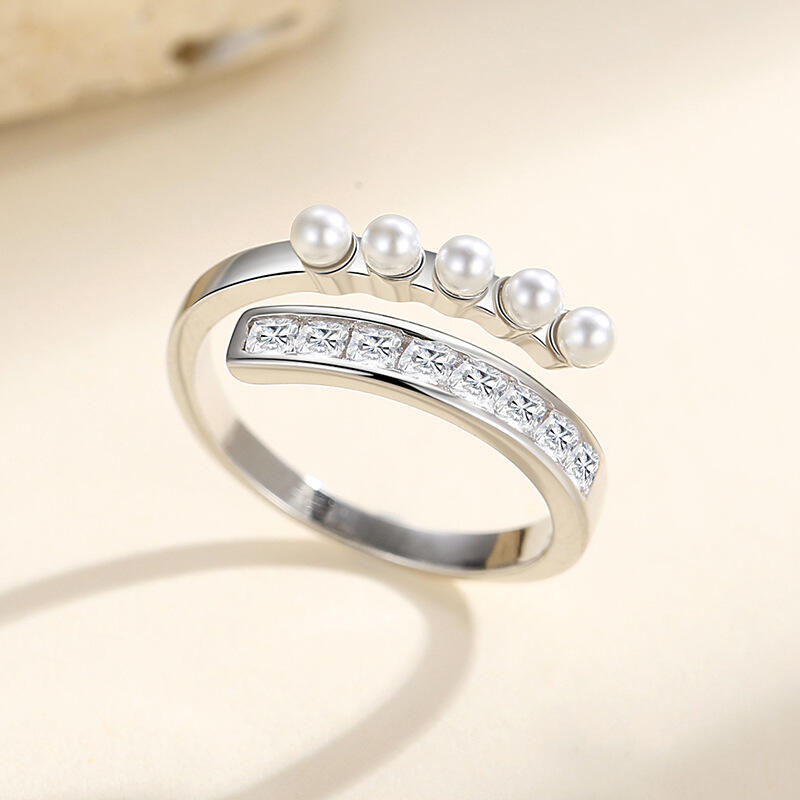 Jeulia "Glimmering Grace" Bypass Design Pearl Sterling Silver Open Ring