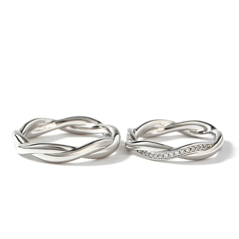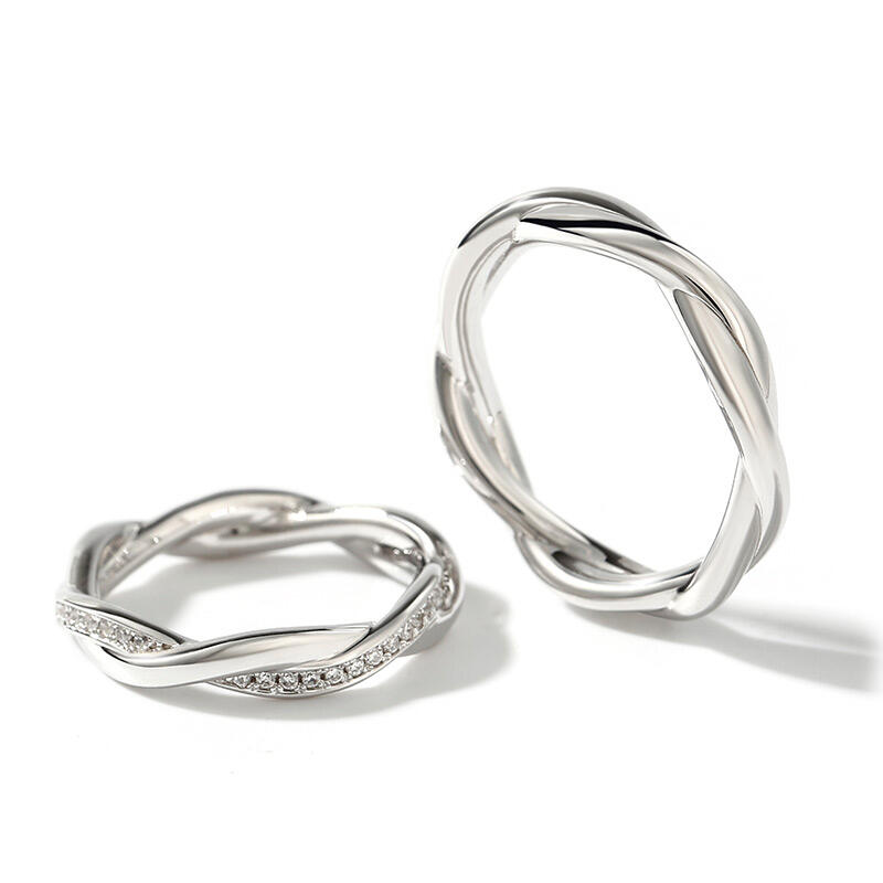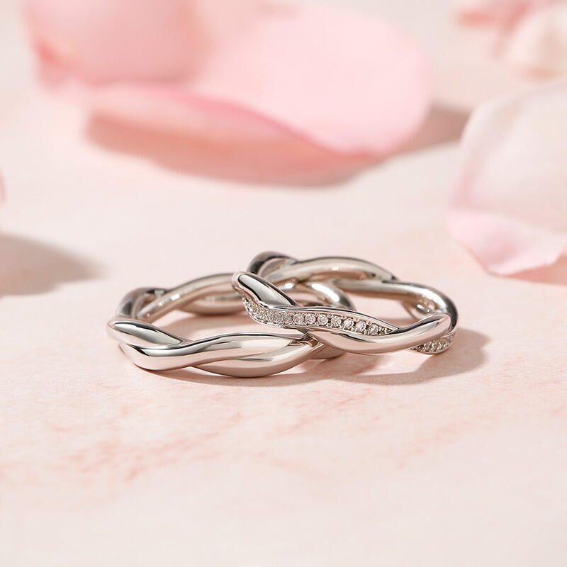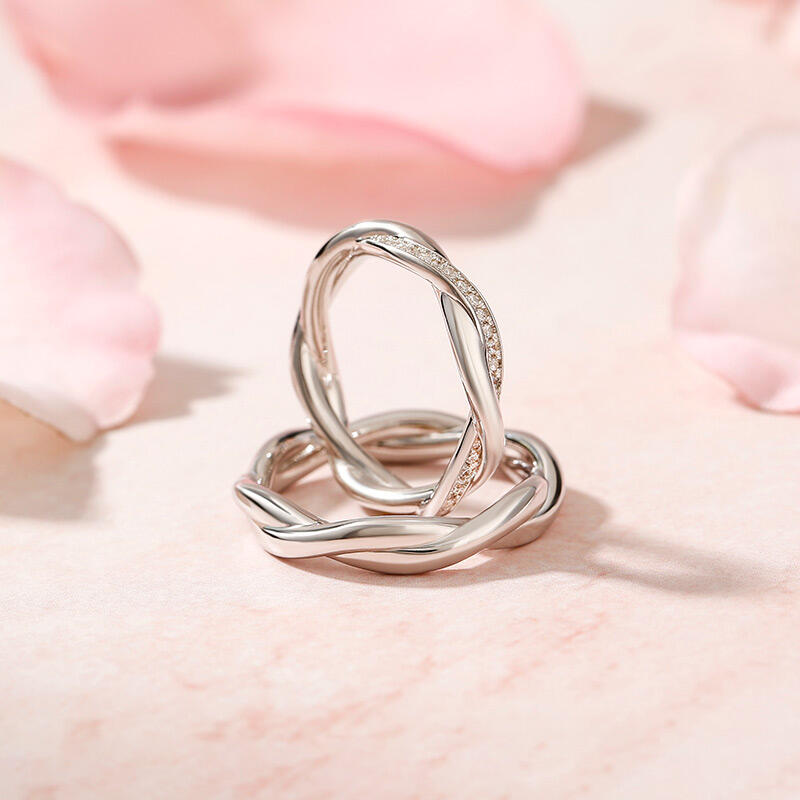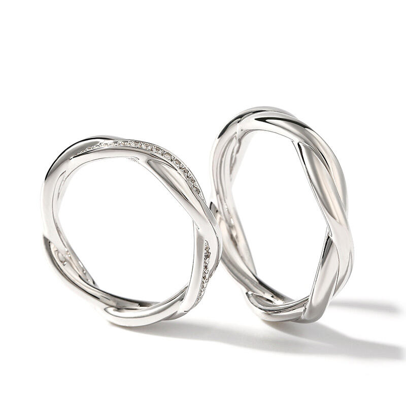 Jeulia "Interweaving of Love" Sterling Silver Couple Rings