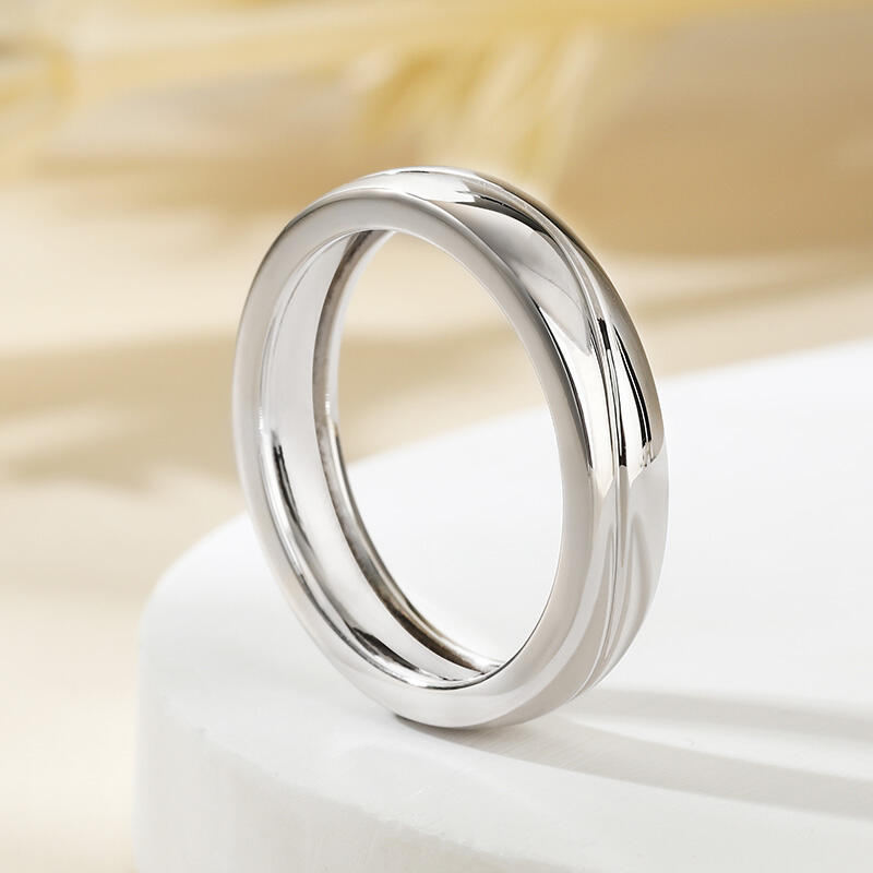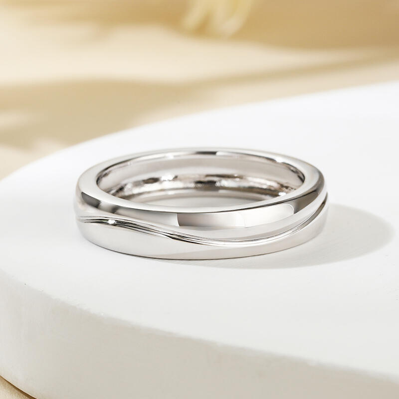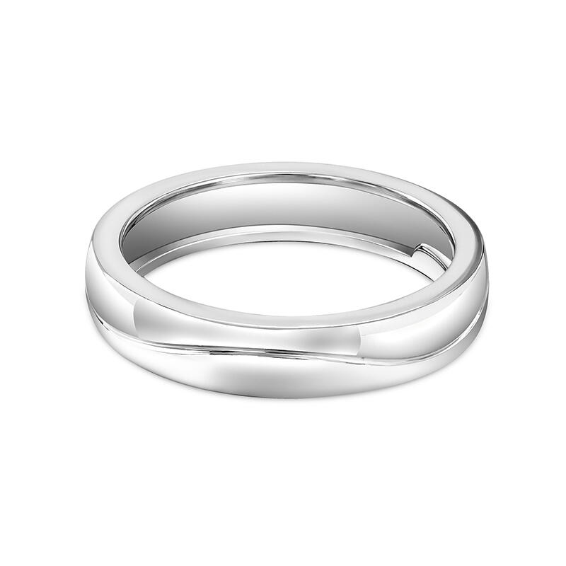 This simple men's wedding band embody the love. The men's wedding band has a curved line that wraps around the band. This represents the unique bond between you and your lover. Just like a ring connects two people together. This wedding band represents love that shines brightly and never fades.