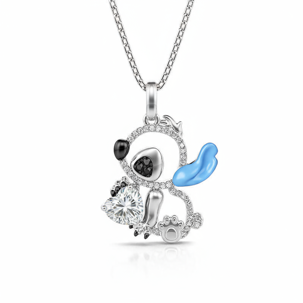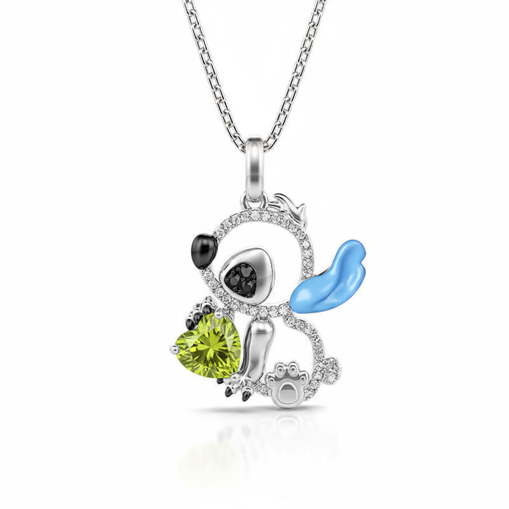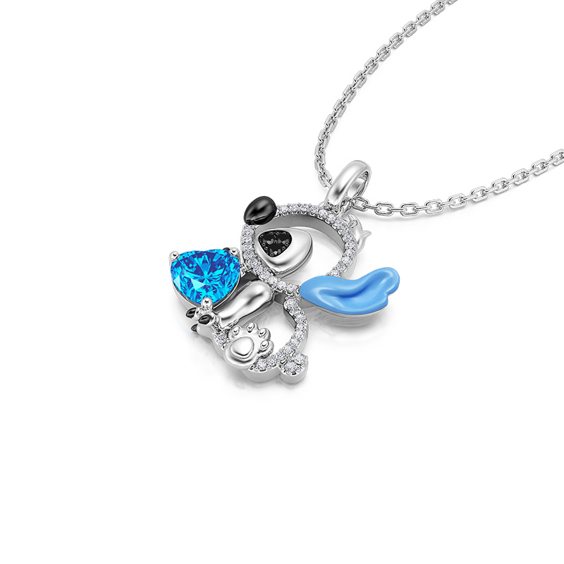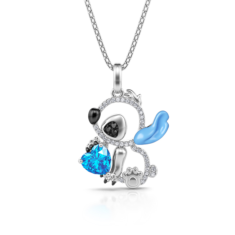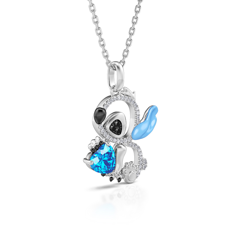 Jeulia Hug Me "Little Monster" Heart Cut Blue Ear Personalized Sterling Silver Necklace