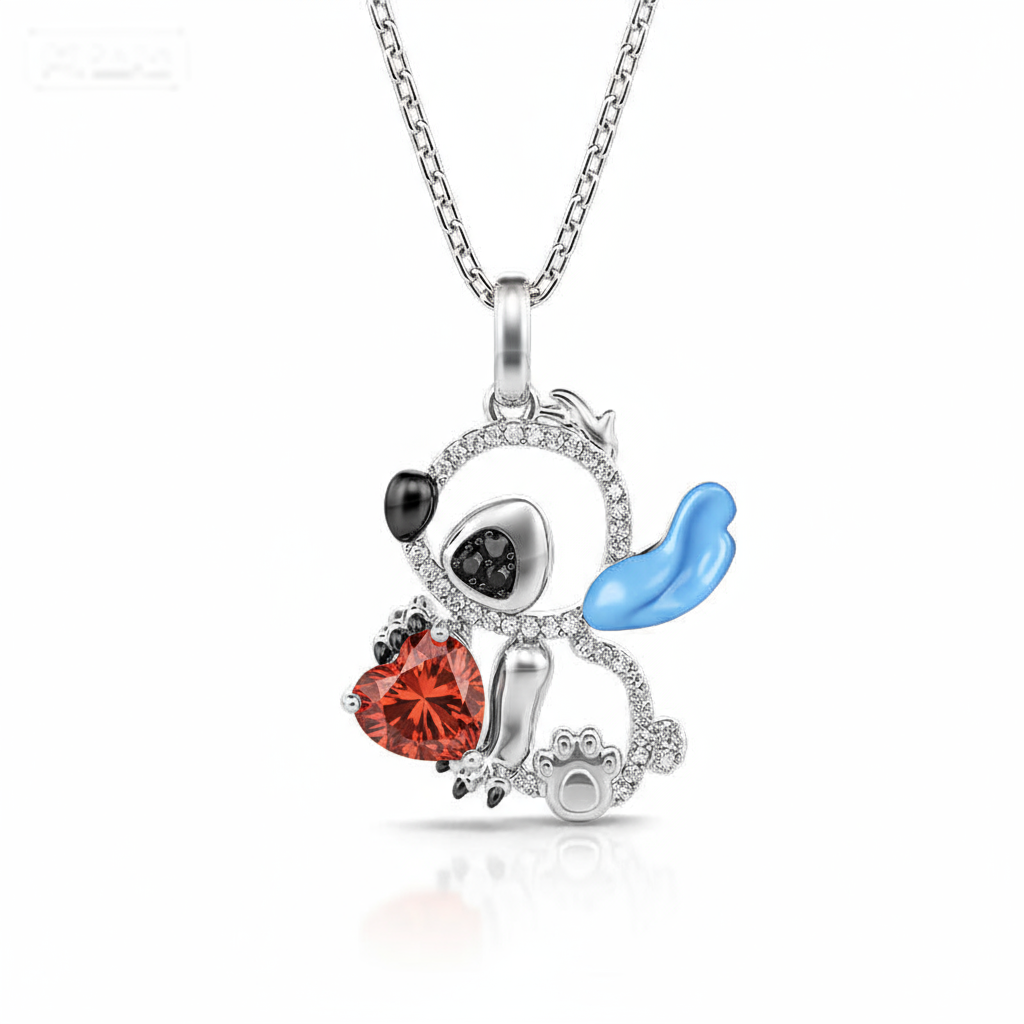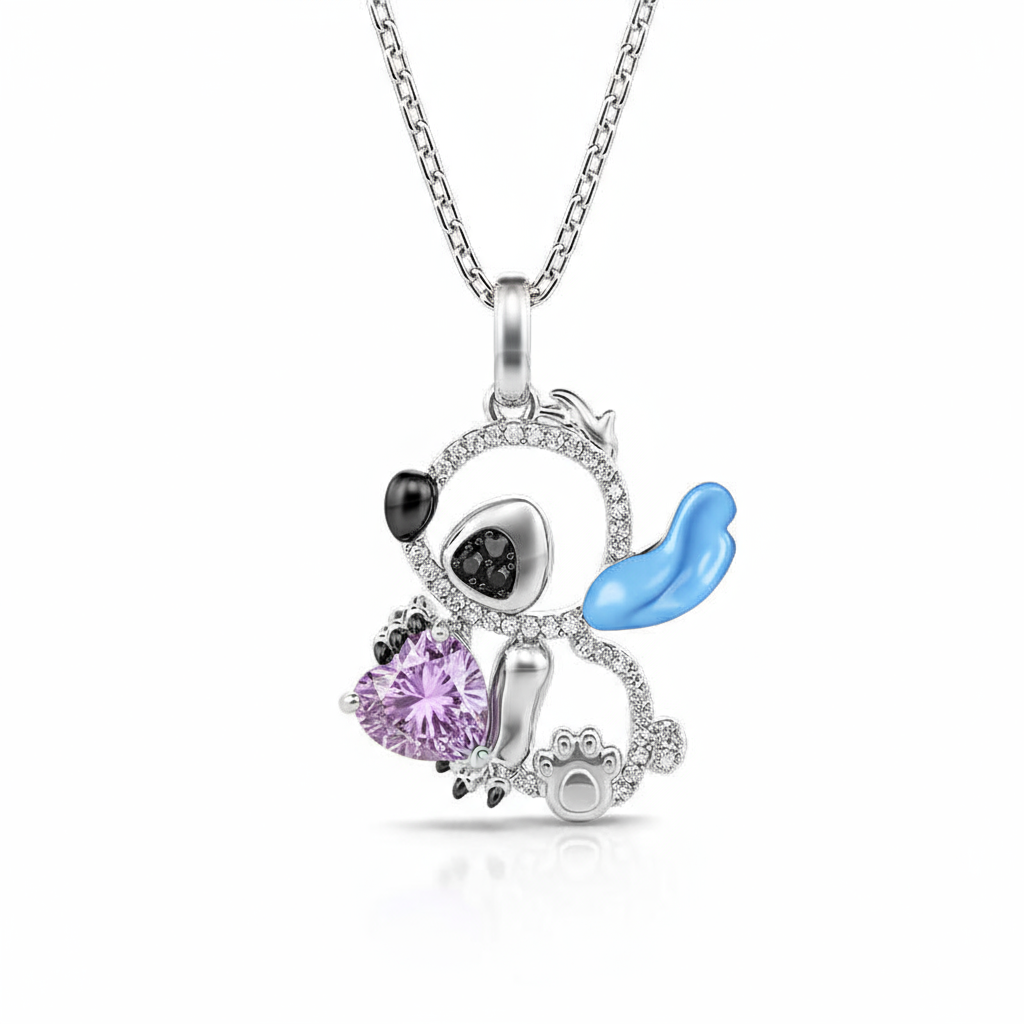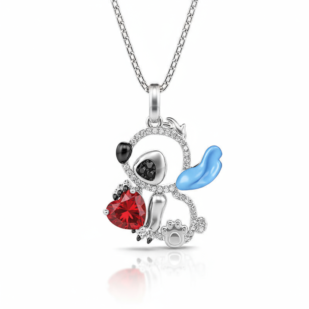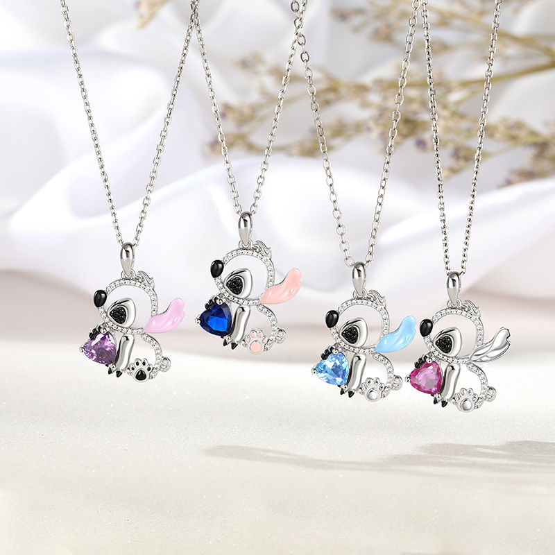 Jeulia Hug Me "Little Monster" Heart Cut Blue Ear Personalized Sterling Silver Necklace