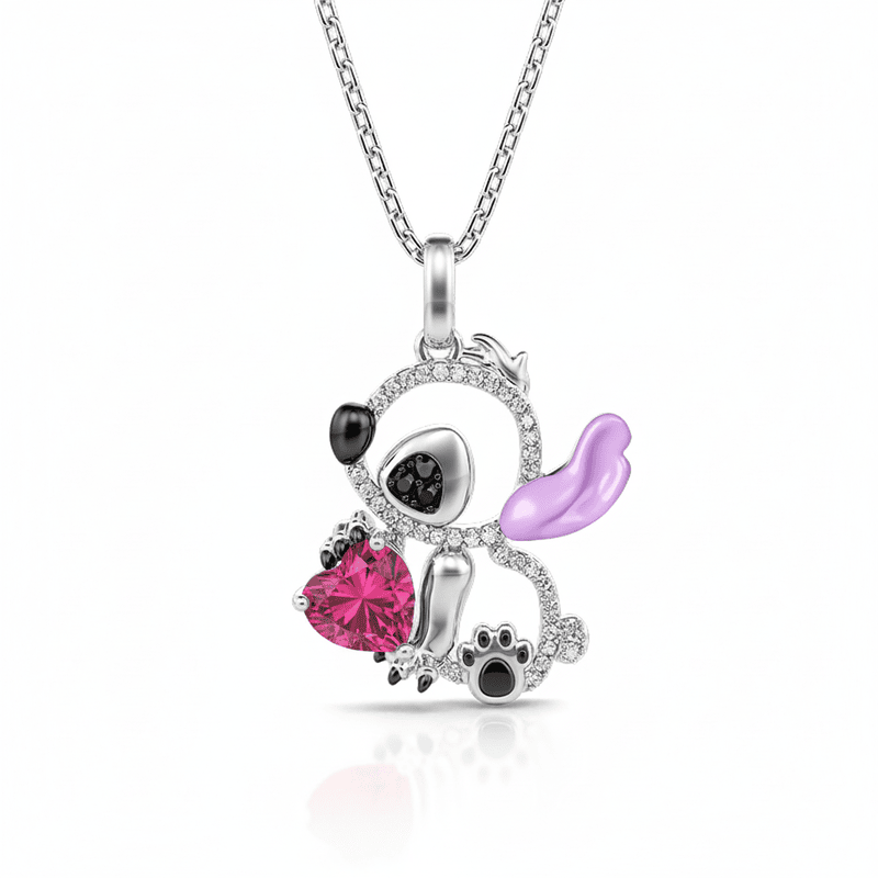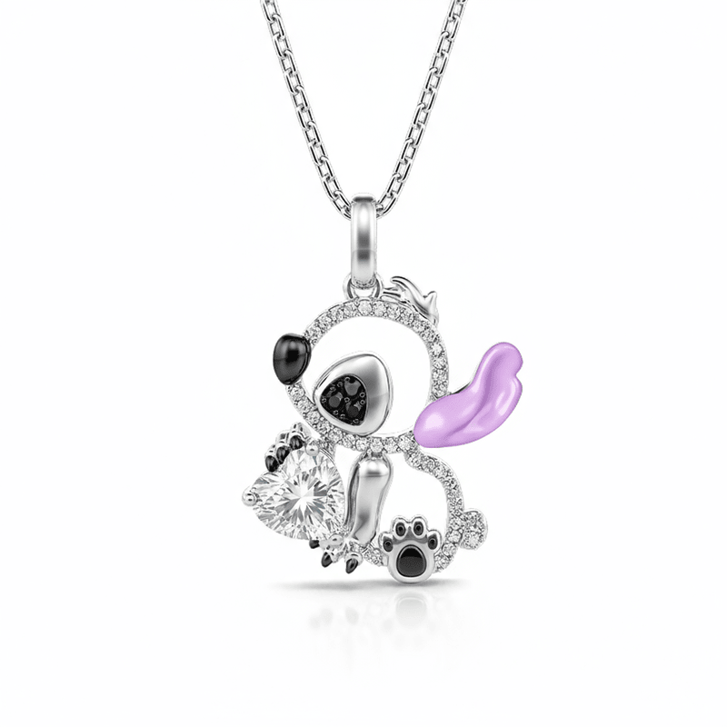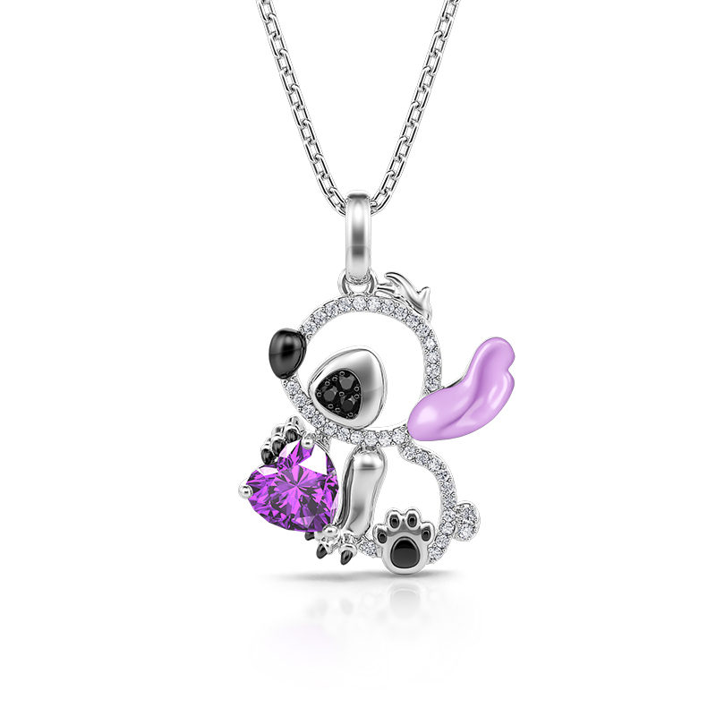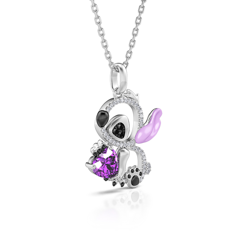 Jeulia Hug Me "Little Monster" Heart Cut Purple Ear Personalized Sterling Silver Necklace
