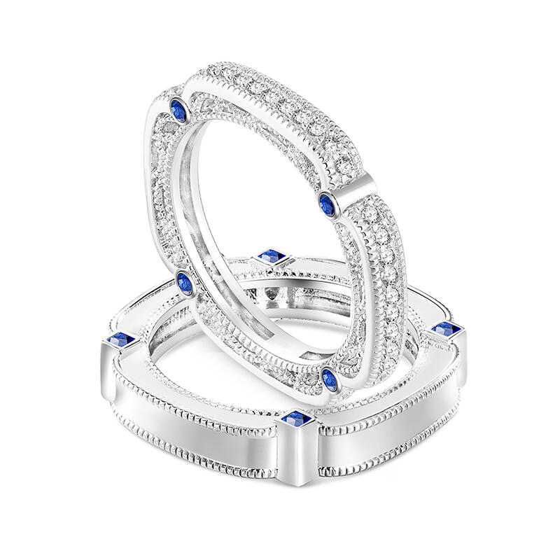 Jeulia "Lucky Blue Star" Vintage Beaded Couple Rings Sterling Silver