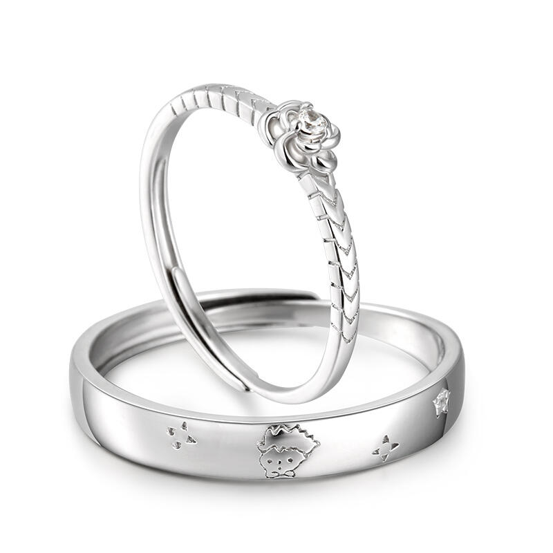 Jeulia "One Love" The Little Prince & Rose Adjustable Sterling Silver Couple Rings