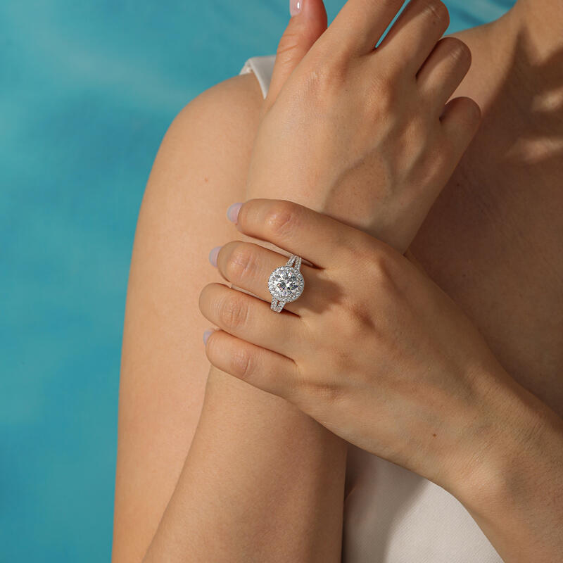 Jeulia "Princess Skirt Hem"Halo Engagement Ring Sterling Silver