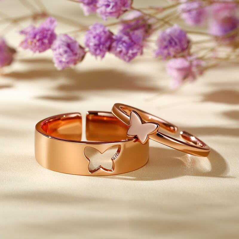 The design concept of the butterfly shape, two butterflies echo each other, representing the mutual affection. The hollowing process makes the overall shape of the butterfly ring unique. Ideal as a thoughtful and meaningful gift for your significant other, anniversary, or special occasion.