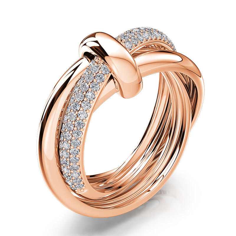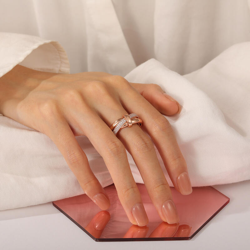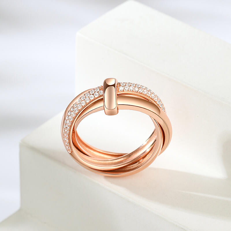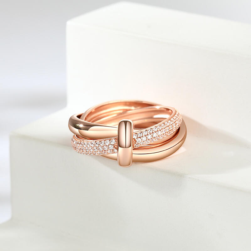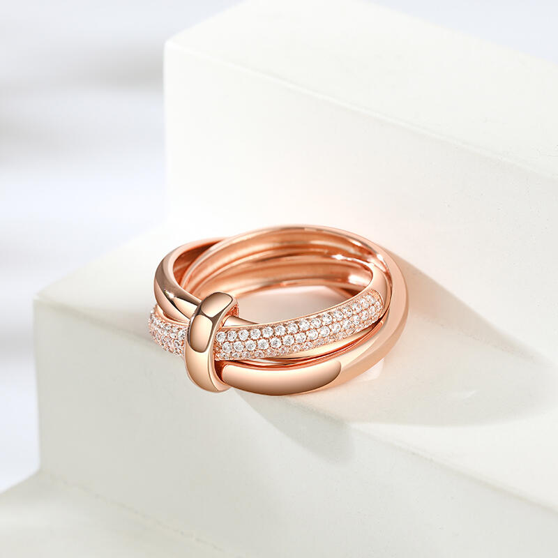 Jeulia Rose Gold Tone Triple Link Knot Sterling Silver Ring