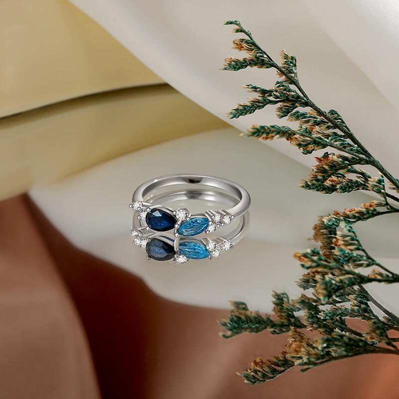 | Stone Color: Sapphire Blue, Aquamarine Blue, Aquamarine Blue, Sapphire Blue | |