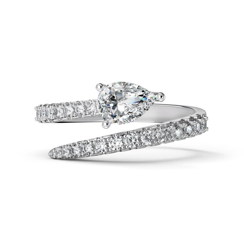 Jeulia "Star Trails" Bypass Design Pear Cut Sterling Silver Open Ring