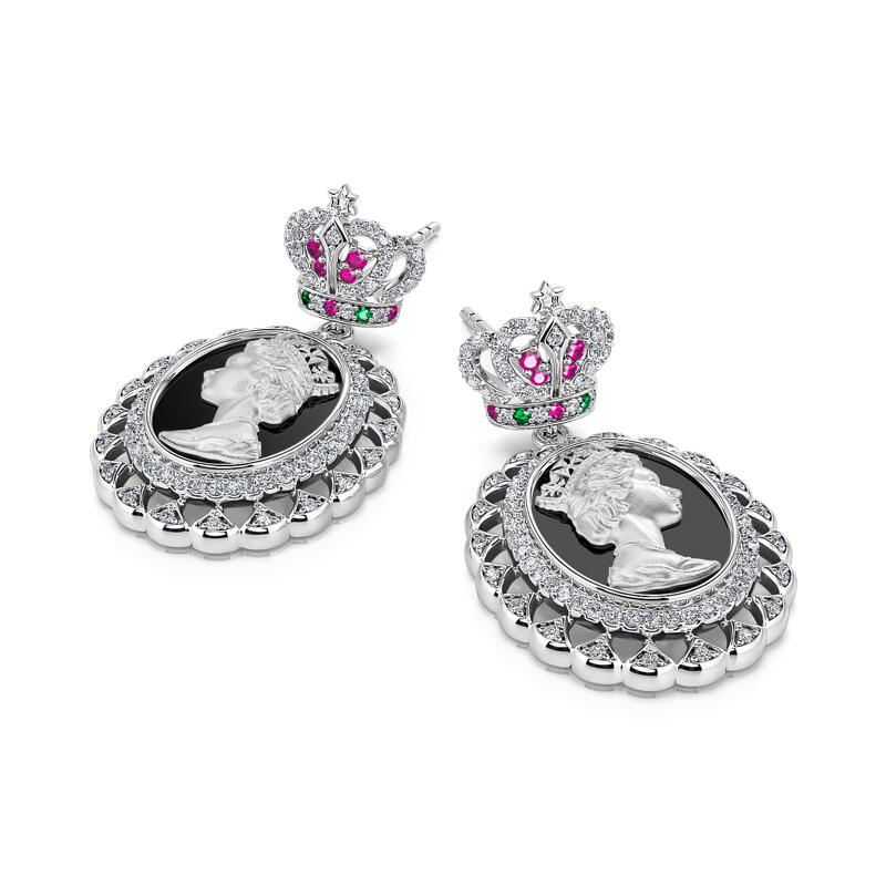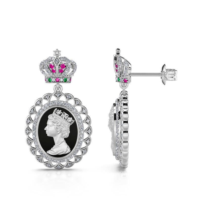 Jeulia "To Honour" Queen Elizabeth Portrait Black Enamel Sterling Silver Earrings