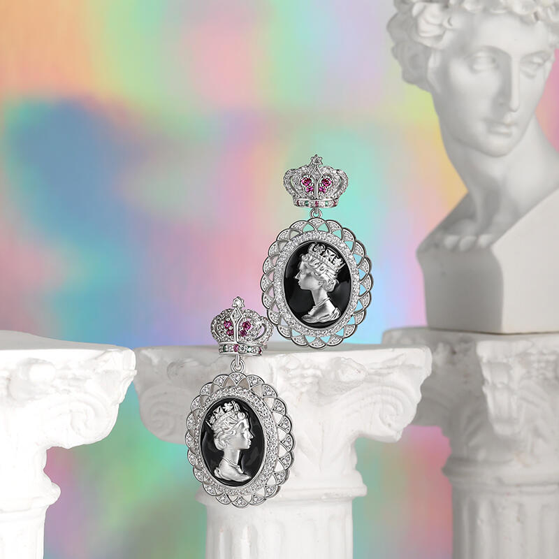 These beautiful earrings are made of 925 sterling silver and has black enamel center and the Queen Elizabeth portrait. The beautifully detailed earrings highlights the large, enameled portrait cameo of a woman. Queen Souvenir Gift Necklace is designed in honor of Queen Elizabeth II, expressing your grief over the loss of a beloved monarch, sharing the grief with your friends and family.