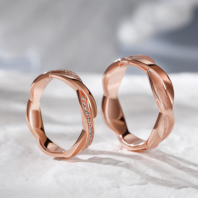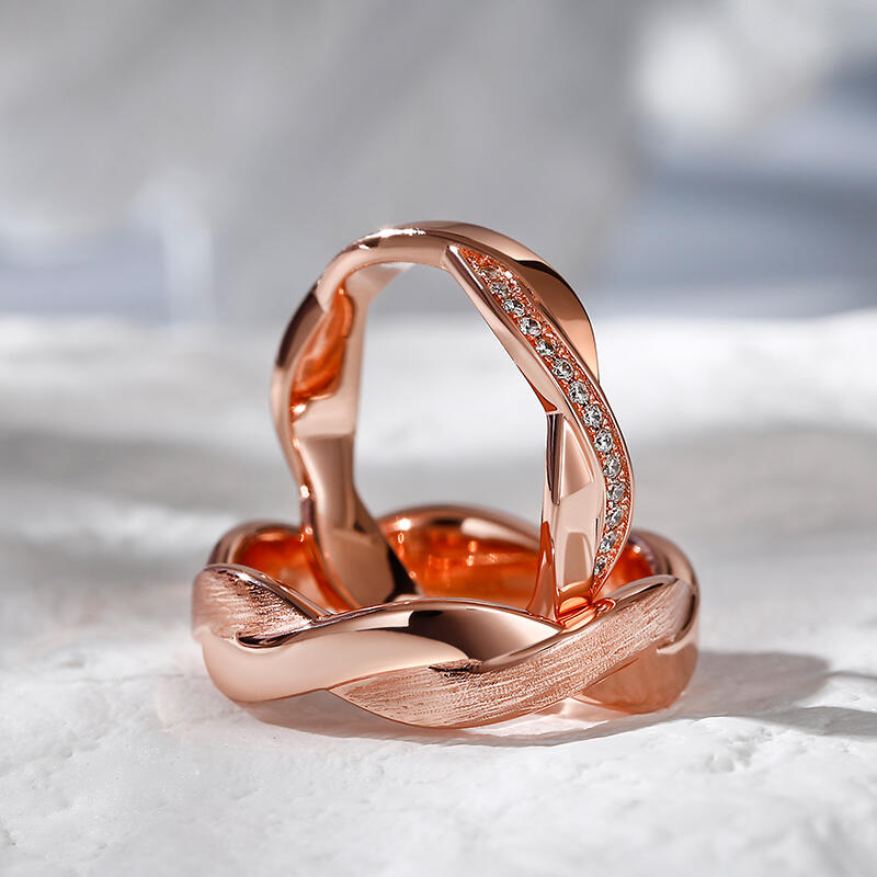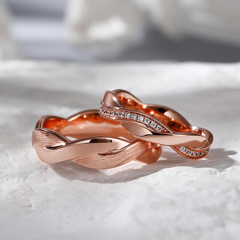 Jeulia "Unbreakable Love" Intertwined Design Sterling Silver Couple Rings