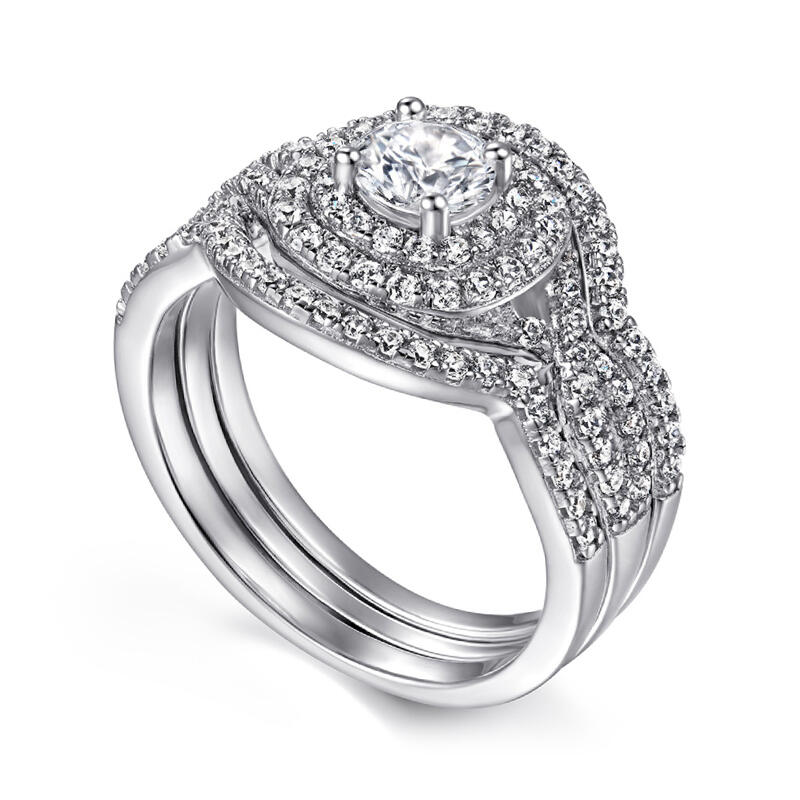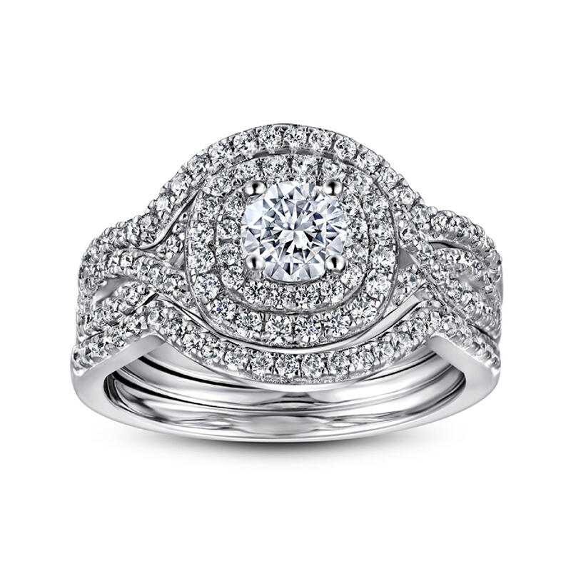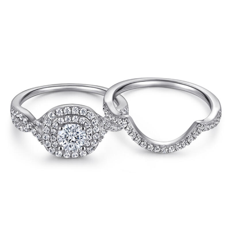 Jeulia 3PC Twist Halo Round Cut Sterling Silver Ring Set