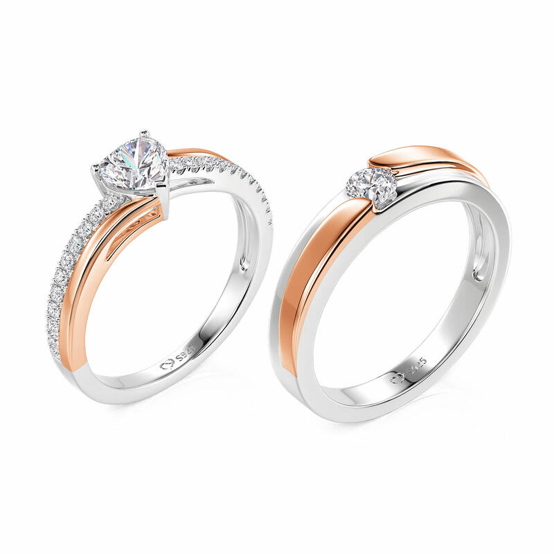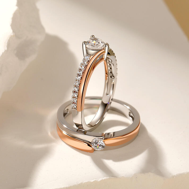 Jeulia Amore Curved Two Tone Couple Rings Sterling Silver
