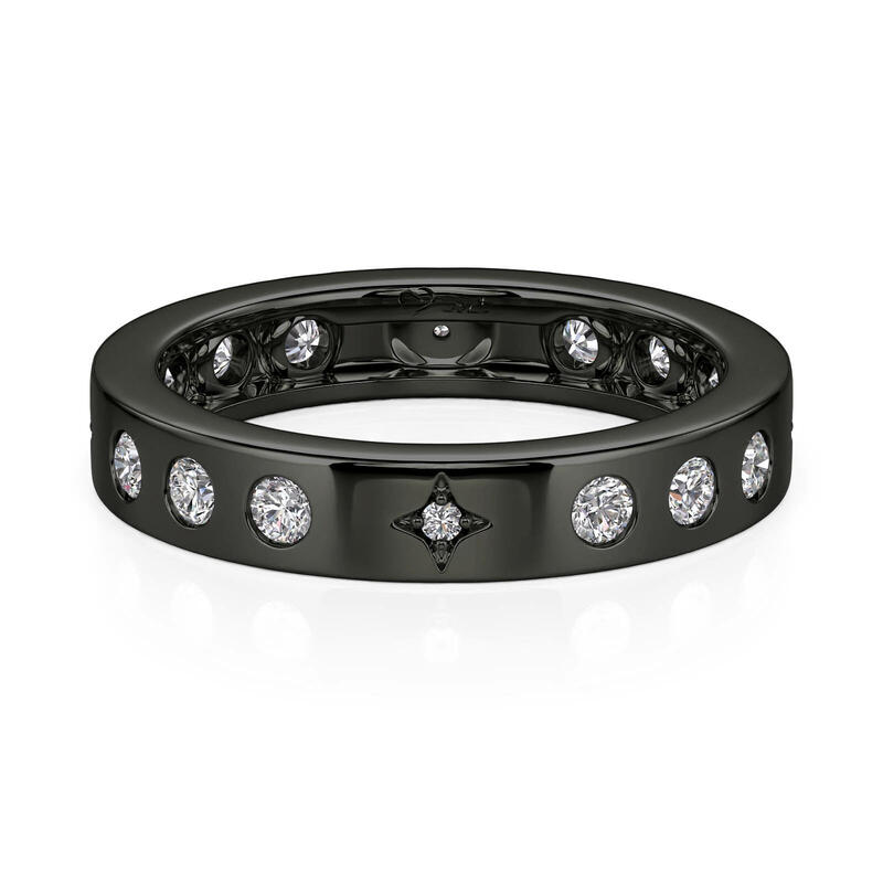 Jeulia Black Celestial Star Men's Ring Sterling Silver