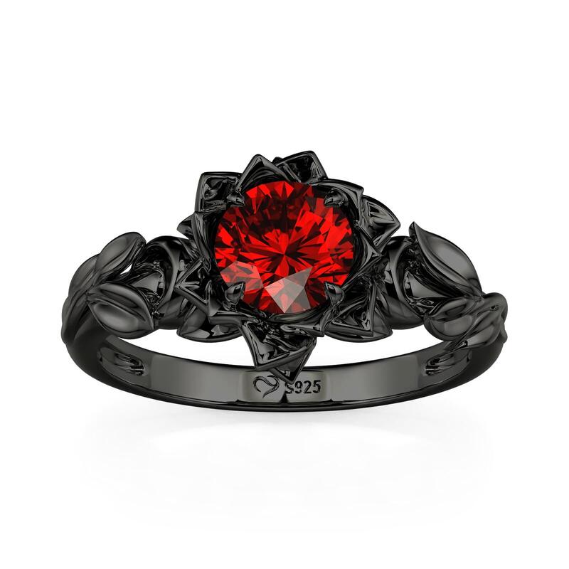 Jeulia Black Floral Round Cut Gothic Ring Sterling Silver