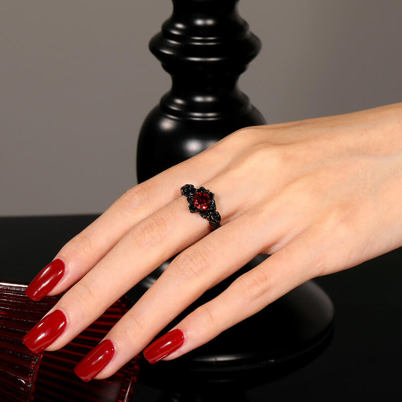 Step into a world of dark elegance with the Jeulia Black Floral Round Cut Gothic Ring. This striking piece features a beautifully crafted black floral design, showcasing a stunning round cut gemstone at its center, exuding a sense of mystery and allure. Made from high-quality sterling silver, the gothic ring's intricate details and rich black finish create a dramatic contrast with the gemstone, making it a captivating statement piece. The floral motif adds a touch of romance, blending gothic elements with timeless beauty. Perfect for those who embrace their unique style, this black ring is an ideal choice for special occasions or as a bold everyday accessory. Let the Black Floral Gothic Round Cut Ring be a distinctive addition to your jewelry collection, celebrating individuality and elegance in every glance.