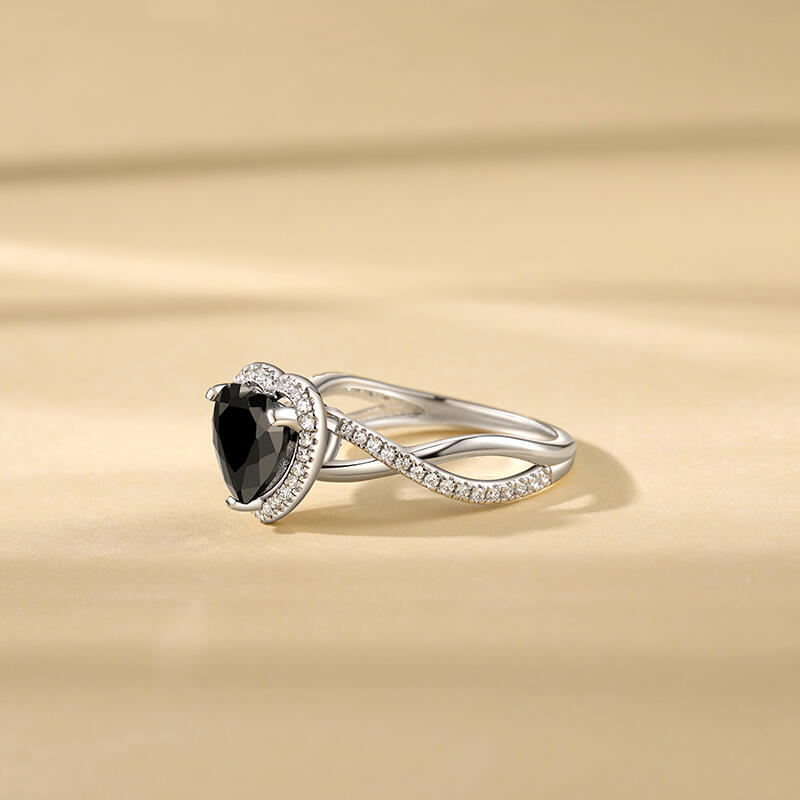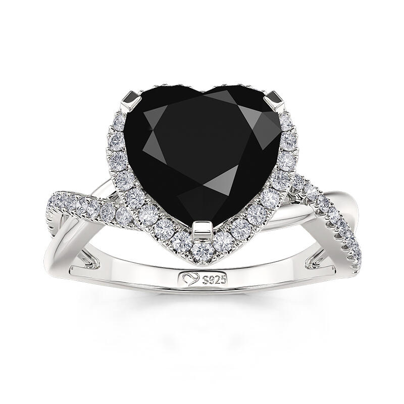 Jeulia Black Halo Heart Promise Ring Twist Sterling Silver