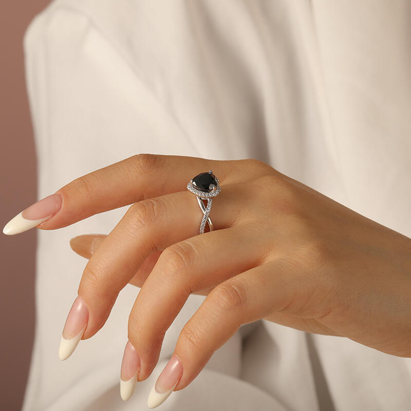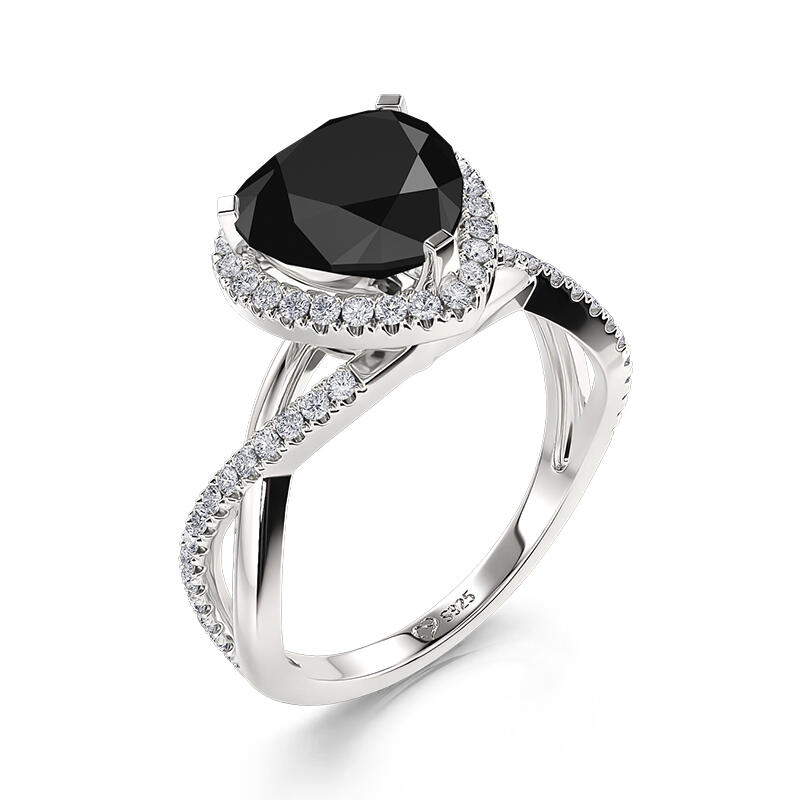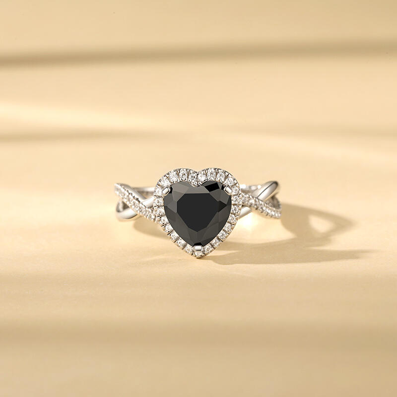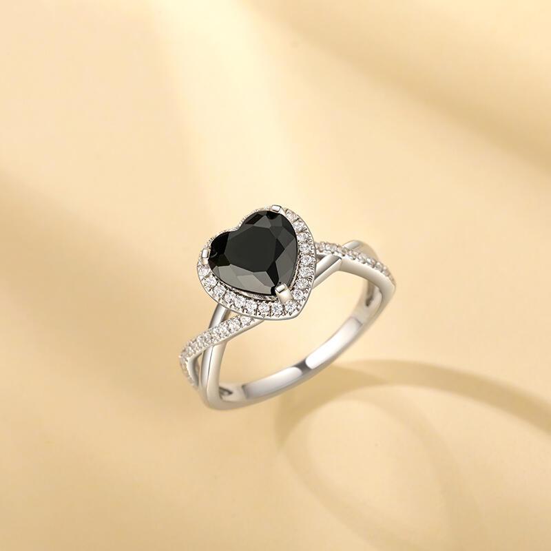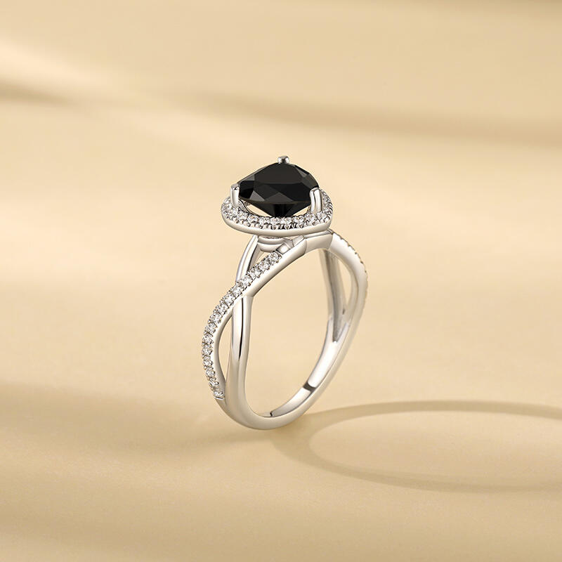 This black heart promise ring is themed "Black Dream", showing a mysterious atmosphere. The main of the halo ring is a black heart stone, which looks like a twinkling star in the dark night. The light ring around the main stone is as colorful as a phantom in a dream, making people lost in it. The promise ring arm is designed with intertwined twist elements, symbolizing the intertwined entanglement of love and fate. Wearing this twist promise ring, let "Black Dream" take you into a mysterious and attractive dream to explore the mystery of love and dreams.