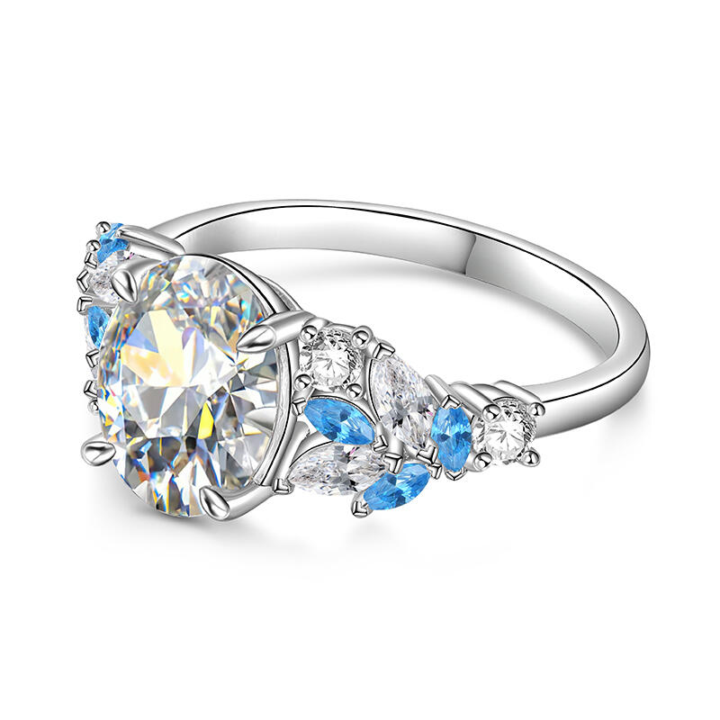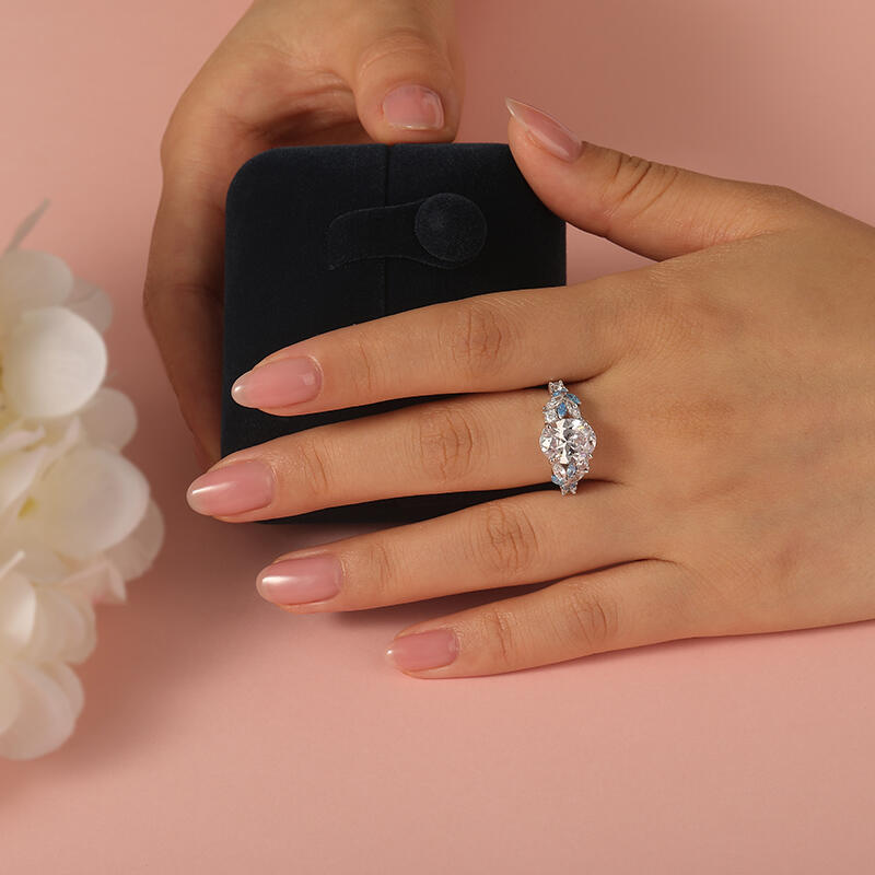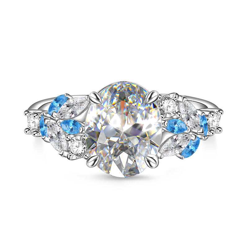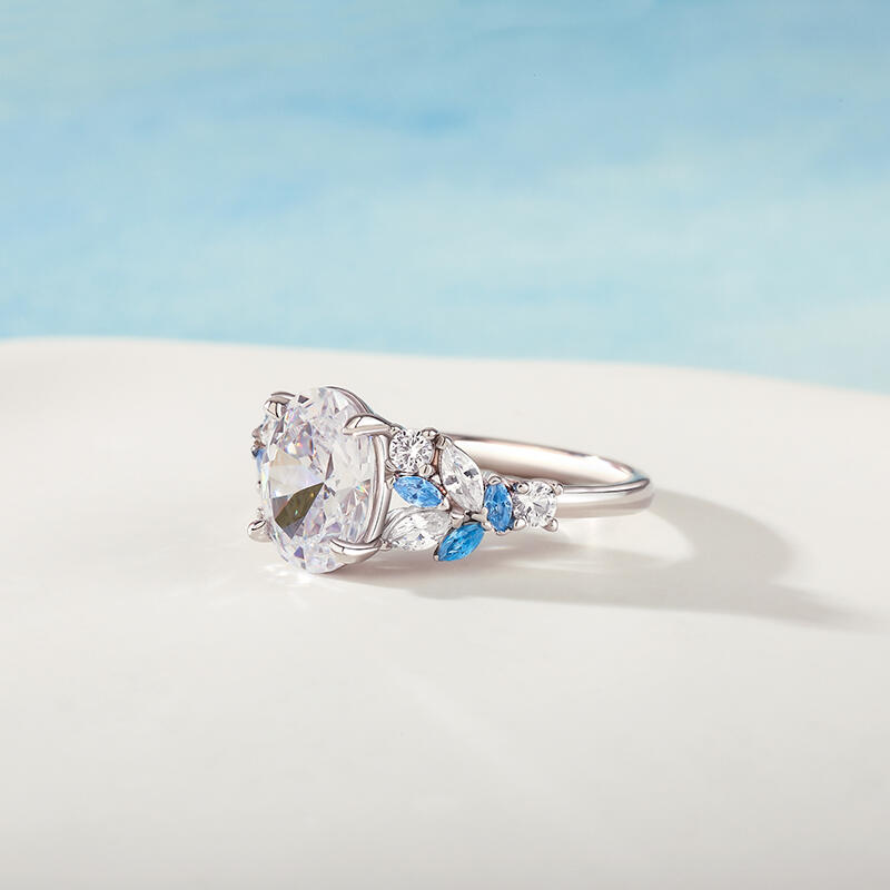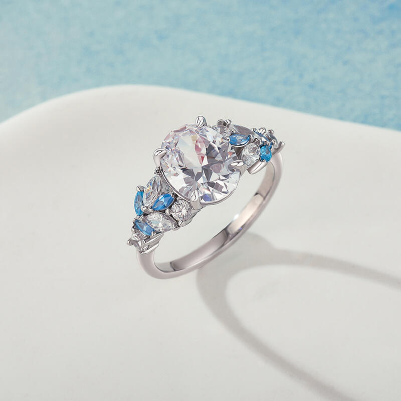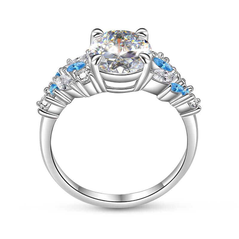 On this oval cut promise ring, your most sincere wishes are reflected, and it is the most precious blessing in your heart. And the clustered blue and white stone ring arms, like the bright stars in the starry sky, represent your good wishes. The sterling silver texture symbolizes the innocence and sincerity of this wish. Wearing it on your fingertips is like keeping your good wishes close to you. Let this blue and white two tone ring be the deepest prayer in your heart, and expect all your beautiful dreams to come true one by one under the starlight.