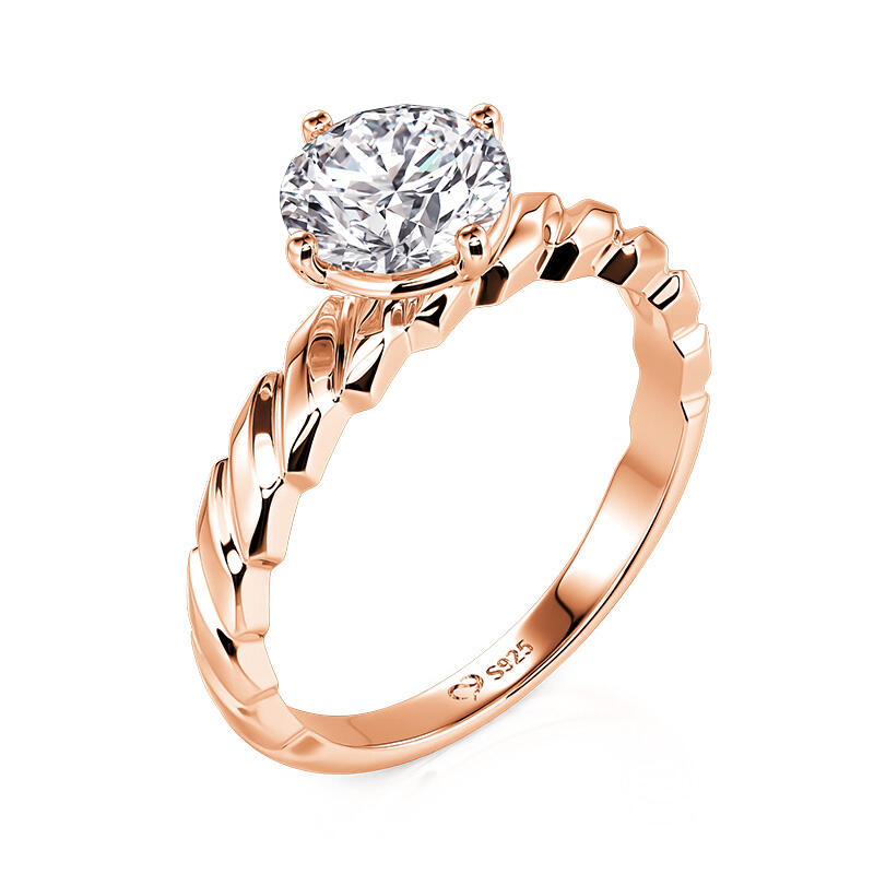 Celebrate your eternal love with the Jeulia rose gold round solitaire braided twisted engagement ring. Centered by a dazzling round-cut stone, it radiates brilliant sparkle from every angle. The band is exquisitely crafted in pure silver with an intricate braided and twisted design, symbolizing how two souls are intimately connected—like an inseparable bond that witnesses an unbreakable love. Finished with warm rose gold plating, it enhances both the romantic glow and lasting durability of the ring. Whether for a proposal or celebrating a cherished milestone, this round solitaire ring tells a story as extraordinary as your relationship. Let it be the shining testament to your entwined destinies.