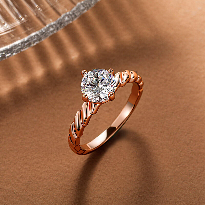 Jeulia Braided Rose Gold Round Solitaire Engagement Ring