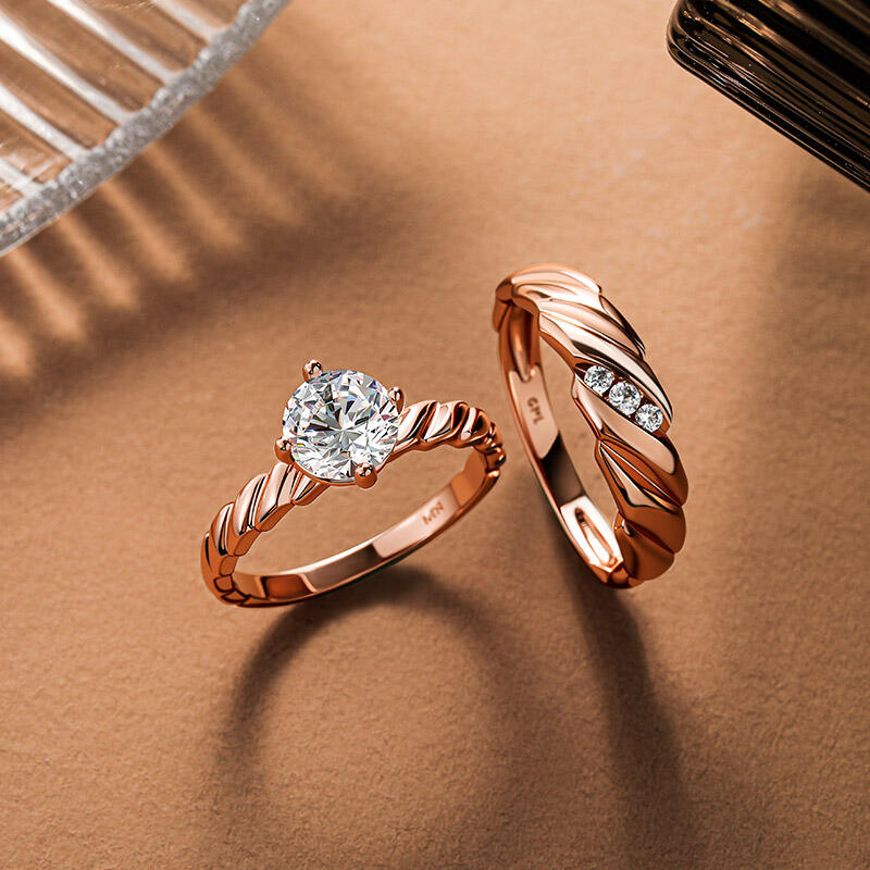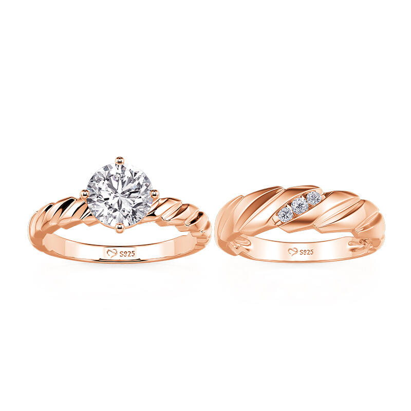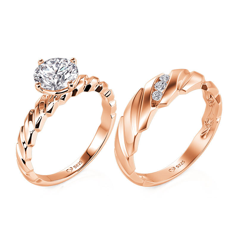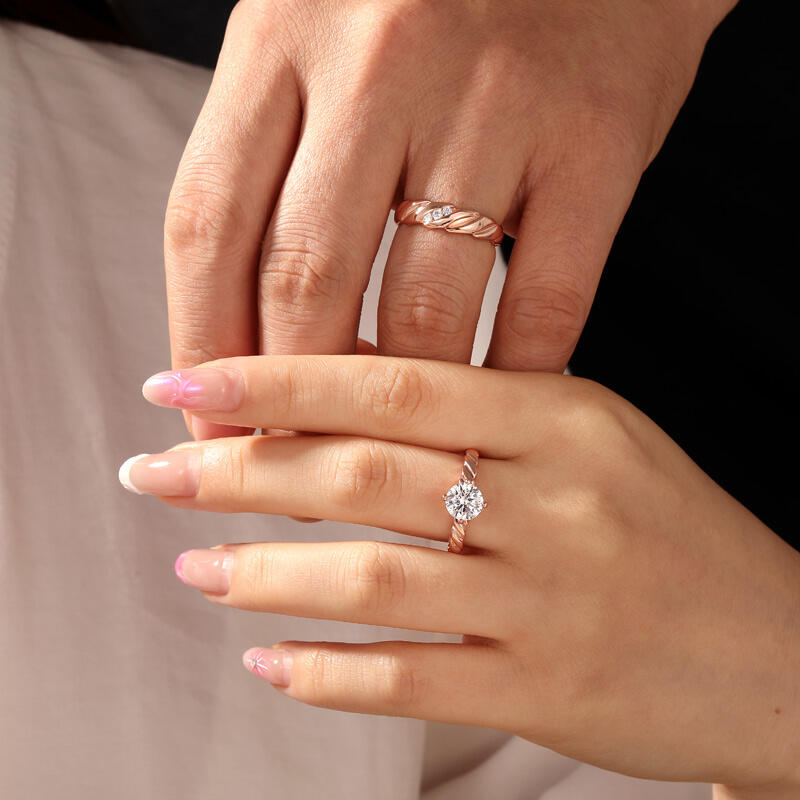 Jeulia Braided Twisted Rose Gold Round Cut Couple Rings Set