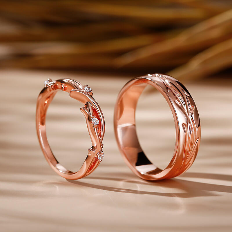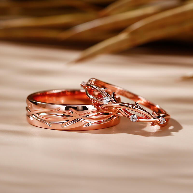 The nature-inspired design symbolizes adding new branches to your family tree. One is a dainty, slender band with a twig design, while the other is a wider band carved the same twig motif. It is a great jewelry gift to express love, witness your love, romantic and sweet.