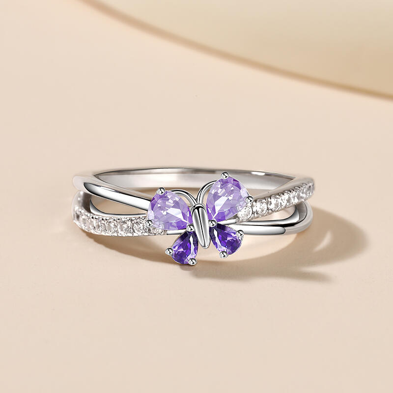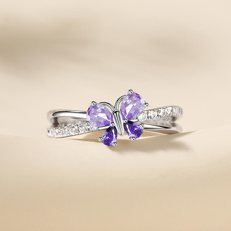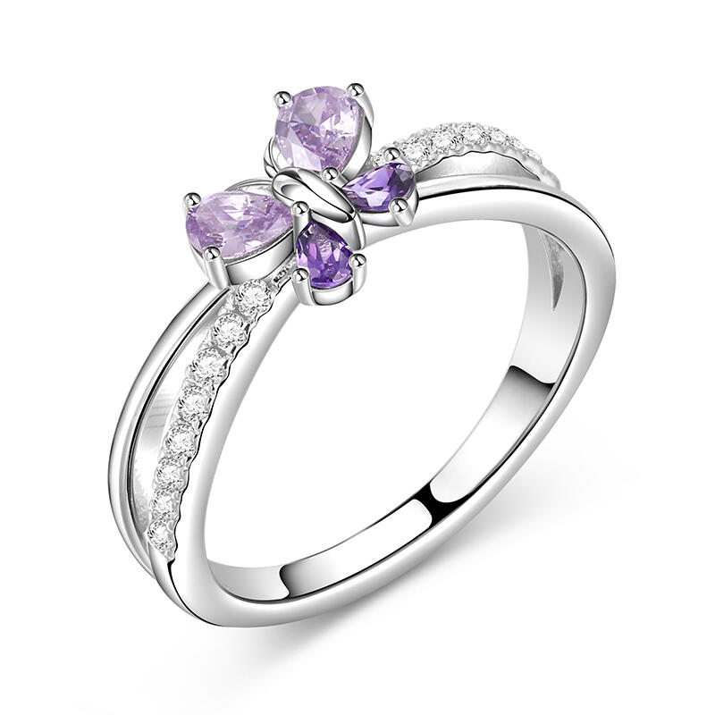 Jeulia Butterfly Pear Cut Sterling Silver Ring