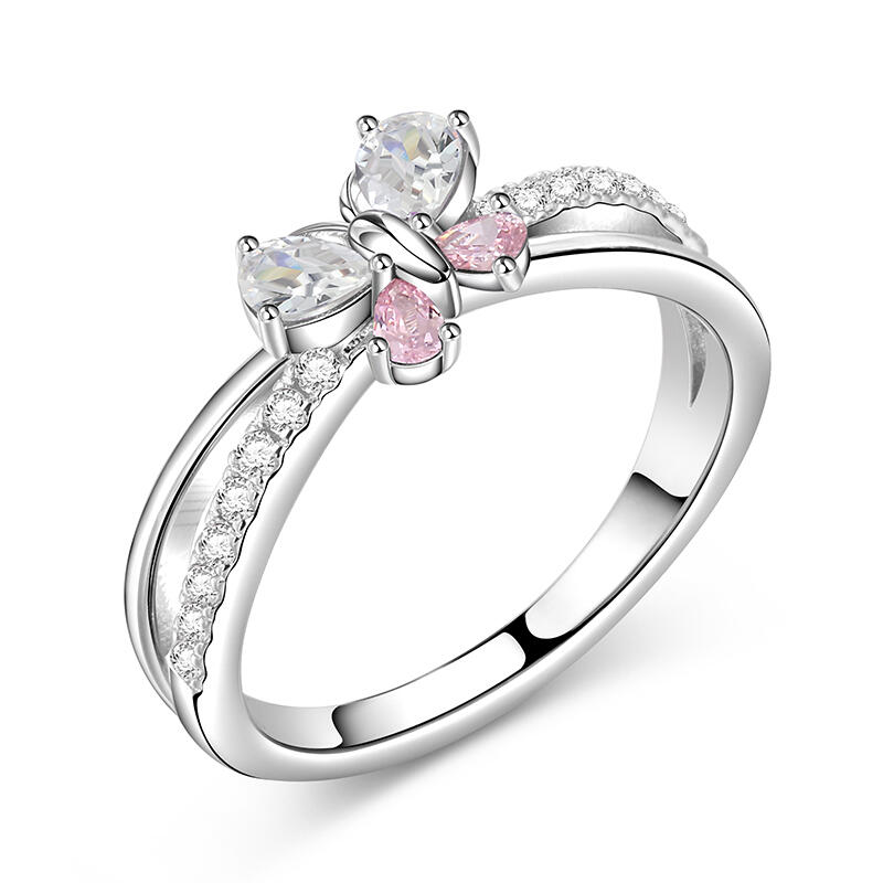 Jeulia Butterfly Pear Cut Sterling Silver Ring
