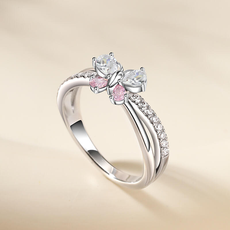 Like a tiny butterfly gracefully perched upon your finger, its wings shimmering with the brilliance of pear-shaped gems. It's a symbol of transformation and beauty. Wear it as a reminder of the delicate wonders of nature and the elegance of simplicity. Let it flutter into your heart and inspire you to spread your own wings and soar.