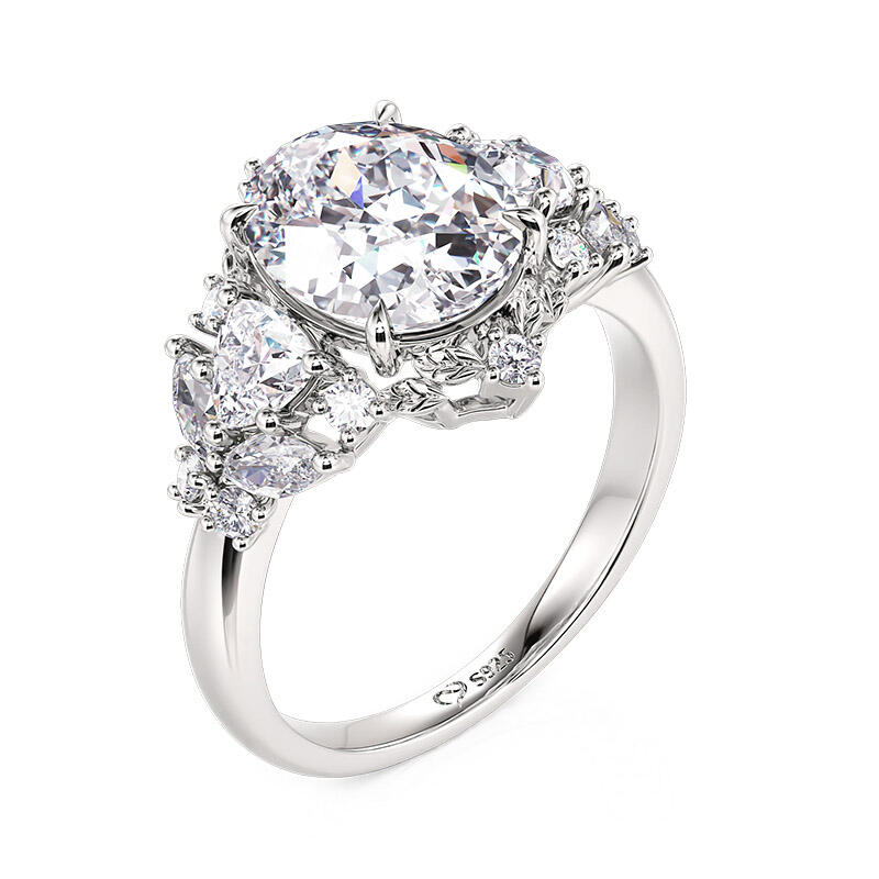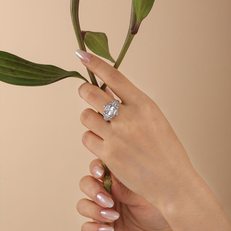 On this very special occasion, we're celebrating with butterflies fluttering lightly on our fingertips and three sparkling gemstones that symbolize our past, present, and future. This gorgeous sterling silver engagement ring incorporates a beautiful butterfly element in a unique three-stone design that is as lovely and light as your love for each other. Each stone represents a special moment between you, set in the light of the years and sparkling with eternal vows.