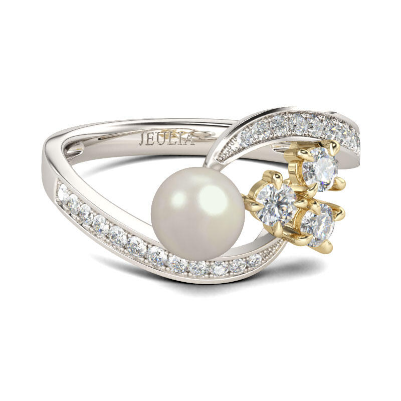 Jeulia Bypass Faux Pearl Sterling Silver Ring