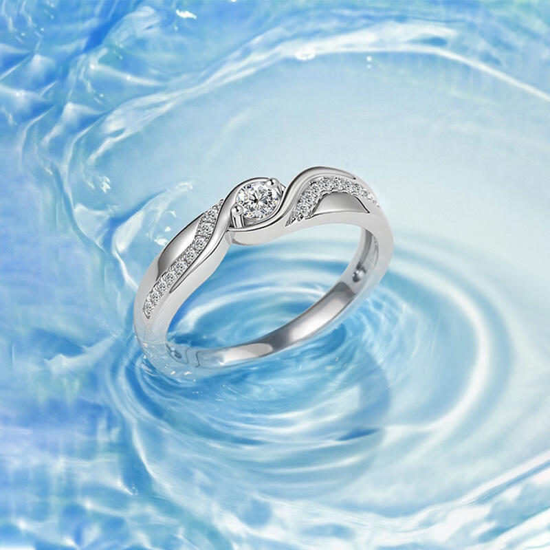 This Jeulia round-cut bypass design women's wedding ring features an innovative bypass design that evokes the gentle rhythm of ocean waves. The round center stone is set at the intersection of the wave-shaped band, with pave diamonds flowing like waves along the double-banded arm, creating a unique visual effect of “waves cradling a pearl.” The wave-like lines of the band are ergonomically optimized to balance fluid beauty with comfortable wearability. Whether for a romantic beach wedding, an elegant evening event, or everyday casual wear, this sterling silver bypass ring seamlessly adapts to any occasion.