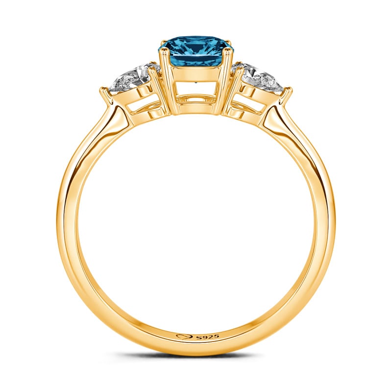 Sweet, simple and delicate ring. Great for creating a minimalist look or for stacking. It adds a fun splash of colour to your look! This ring has a cushion cut with pear shaped stones on either side for a delicate look!