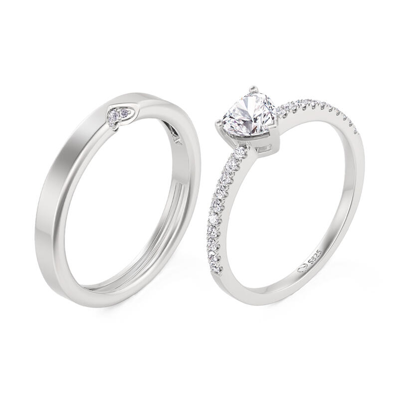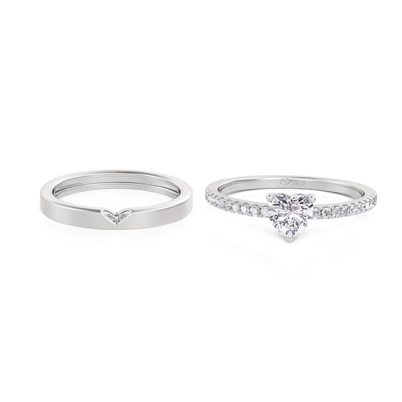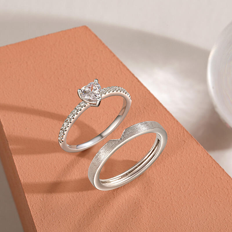 When love strikes, every moment is worth treasuring. This custom couple rings with classic heart design , customizable for both men and women, is like a tailor-made love letter for you, carrying unique love. The main stone is simple but sparkling, just like the light of each other in your eyes, no matter when and where, as long as you take a glance, you can feel the deep and pure love. It lies quietly between your fingers, witnessing your every smile and embrace, letting your love shine in your daily moments and becoming the most shining mark in your love journey.