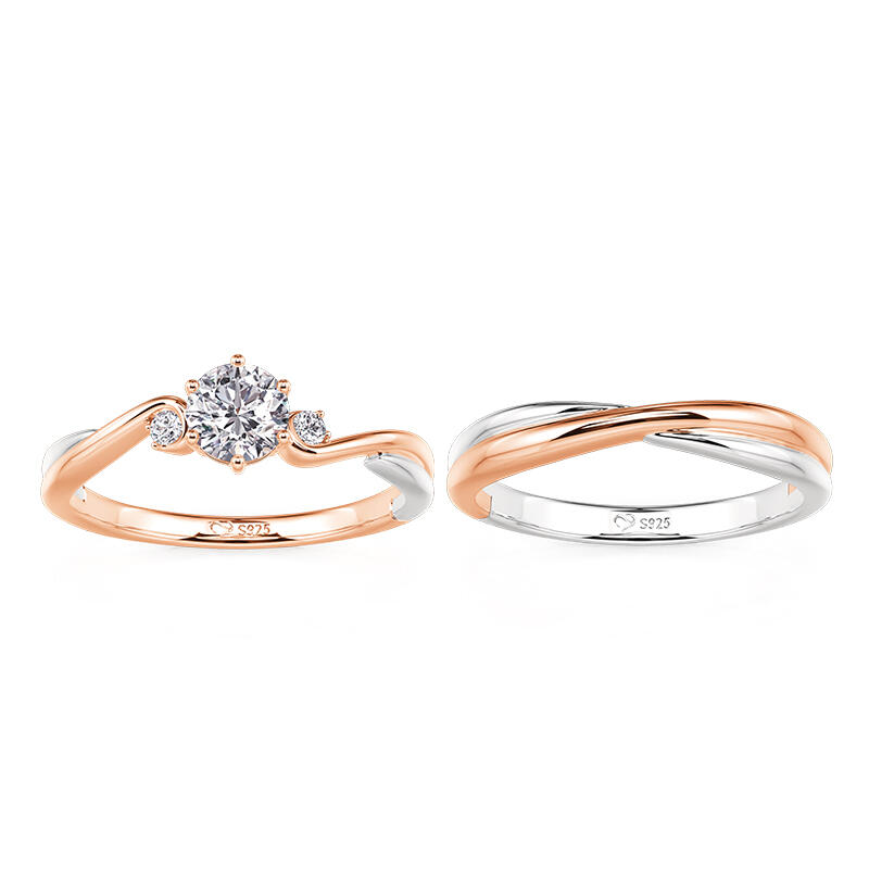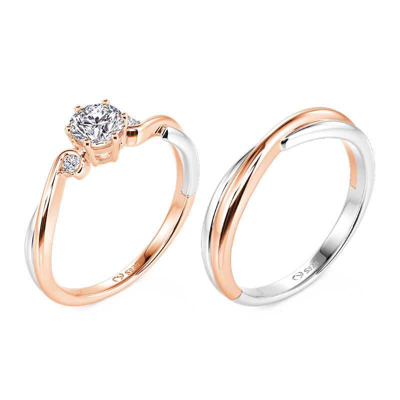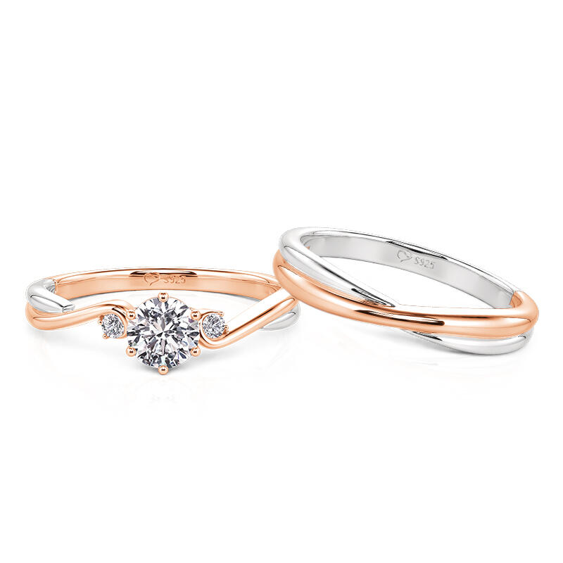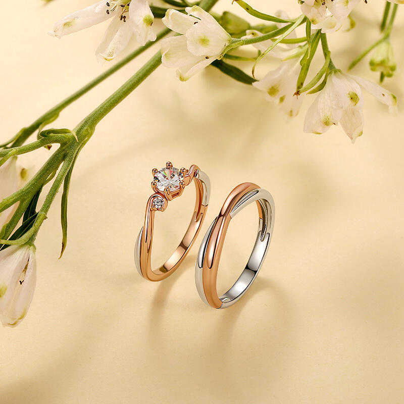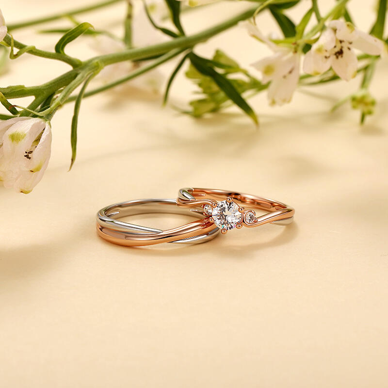 Jeulia Classic Custom Two Tone Couple Rings with Twist Band
